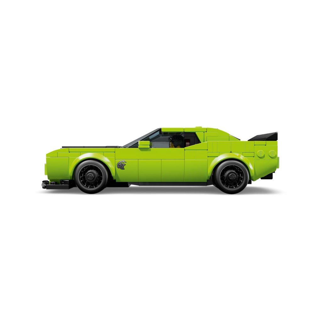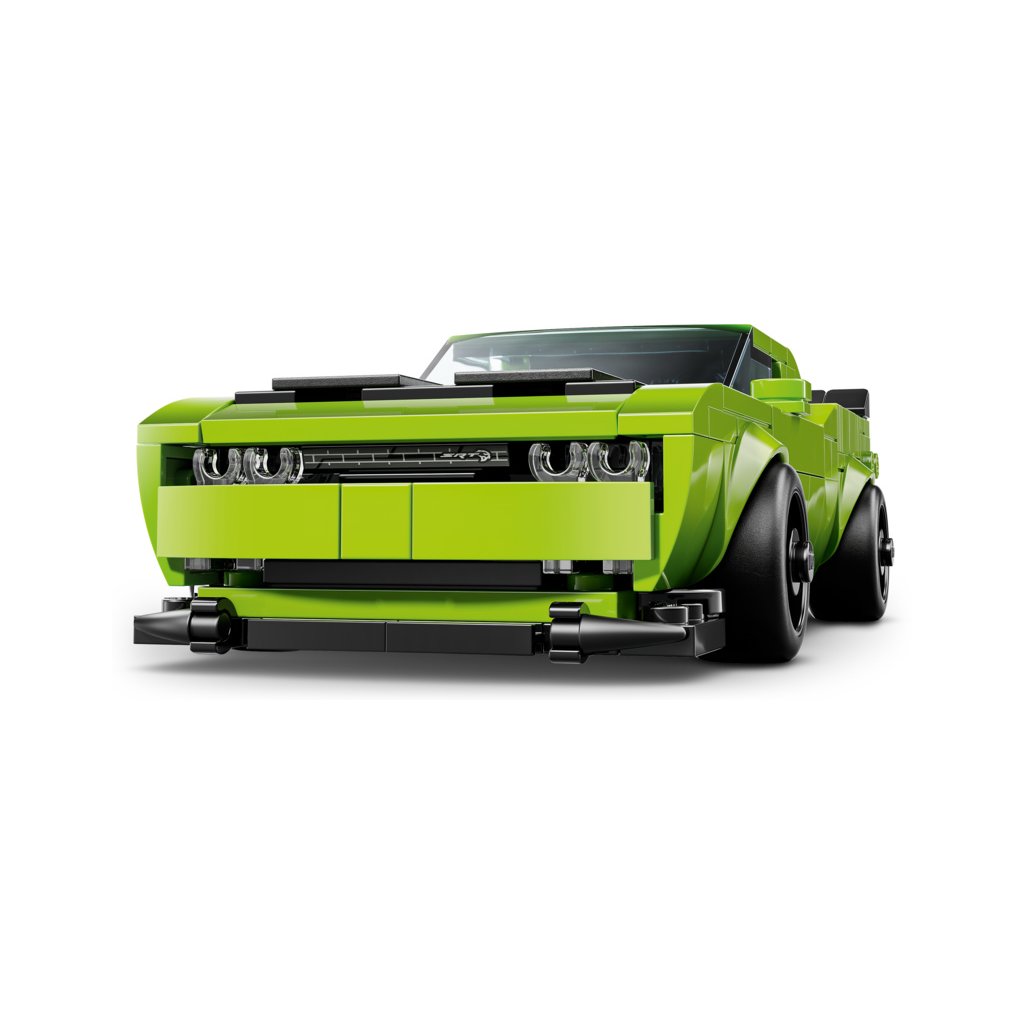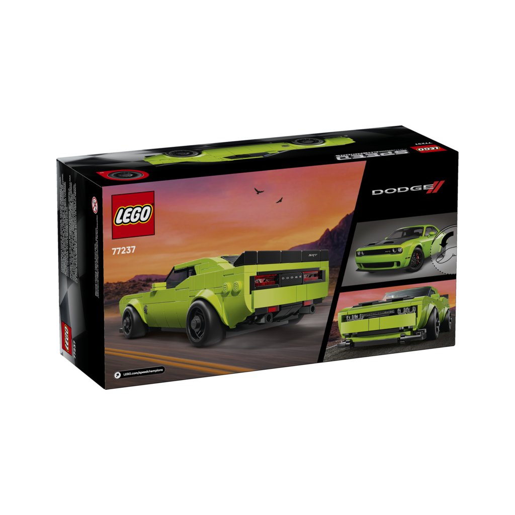 Toto dvoudveřové kupé je vůbec první moderní auto Dodge, které se objevilo v řadě LEGO Speed Champions. Model má dlouhou kapotu, vypouklé sání na kapotě, výraznou přední masku a dvojitý výfuk. Součástí sběratelského modelu je také minifigurka řidiče, se kterou se děti a fanoušci sporťáků můžou pustit do závodění na trati i na silnici.