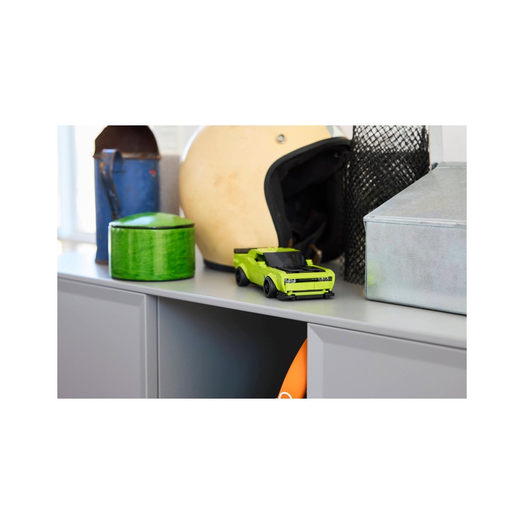 - Výkonný sporťák pro malé stavitele – Děti od 9 let a fanoušci výkonných sporťáků si postaví a vystaví závodní model LEGO® Speed Champions Sportovní auto Dodge Challenger SRT Hellcat