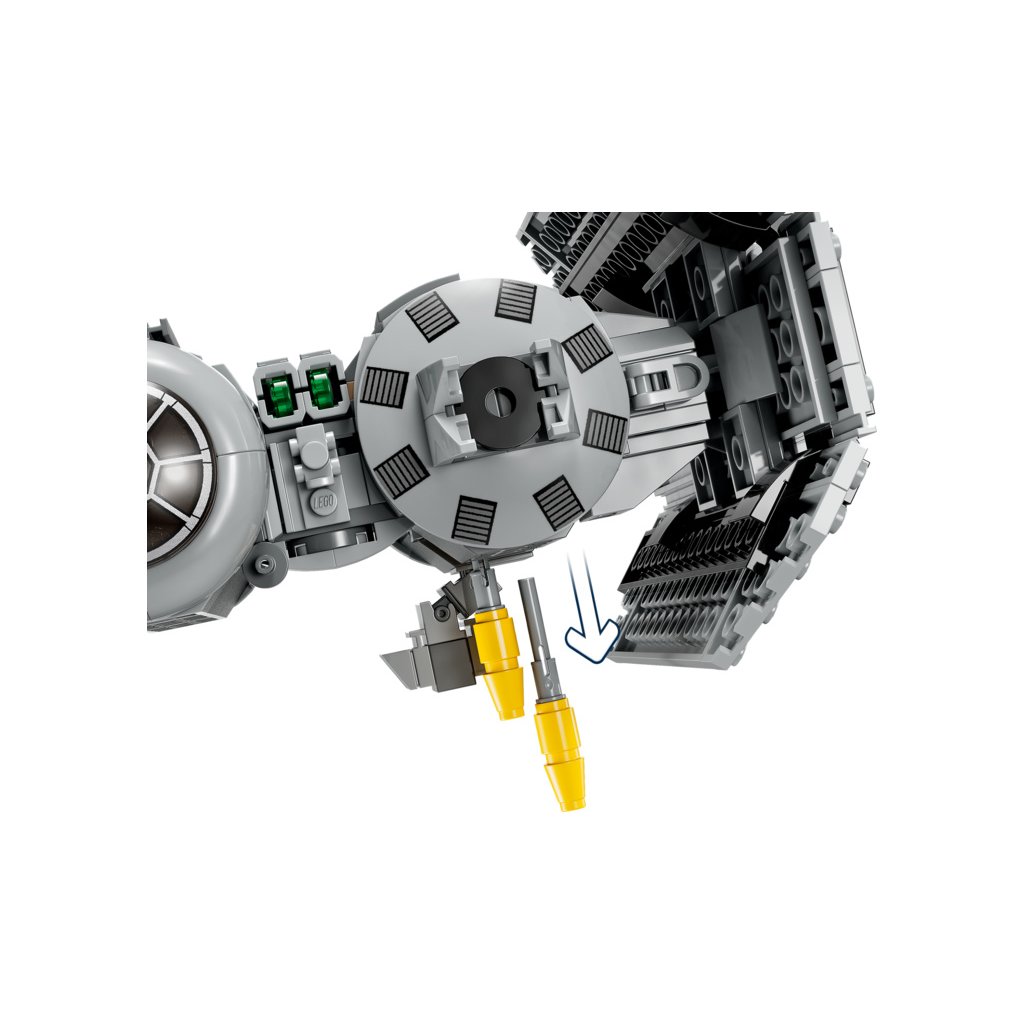 - Sestaven pro boj – Bombardér TIE je vybaven otevíracím kokpitem pro minifigurku, přihrádkou pro 4 torpéda (stavebnice obsahuje 6 sestavitelných torpéd), která lze shodit, a 2 vystřelovači