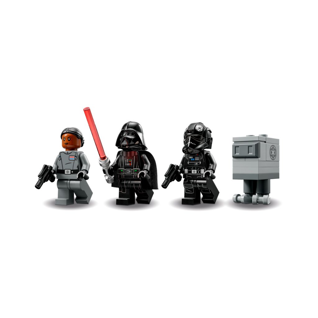 - 3 minifigurky LEGO® Star Wars™ se zbraněmi a Gonk droid – Darth Vader se světelným mečem, viceadmirálka Sloane s blasterovou pistolí a pilot bombardéru TIE s blasterovou pistolí, a navíc figurka LEGO Gonk droida