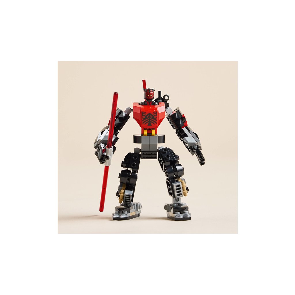 - Minifigurka LEGO® Star Wars™ Darth Maul – Minifigurka LEGO této oblíbené postavy ze světa Star Wars má dvojitý červený světelný meč, který lze připevnit na zadní část robotického obleku