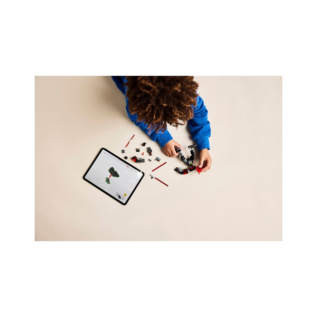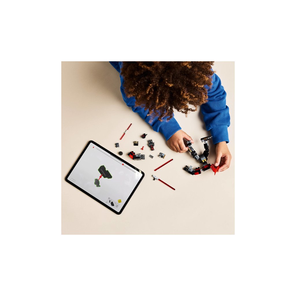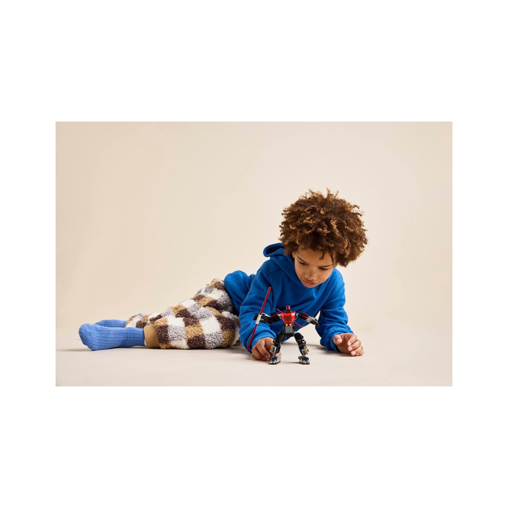 - Sestavitelný robotický oblek LEGO® – Robotický oblek má pohyblivé ruce, paže, nohy a chodidla, otevírací kokpit pro minifigurku LEGO a navíc velký červený světelný meč s dvojitým ostřím