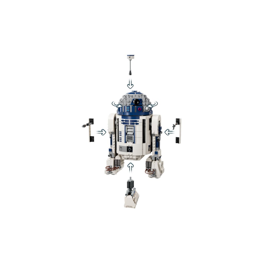 - Sestavitelný výstavní model s hravými detaily – Hlavu R2-D2 lze otáčet o 360 stupňů a součástí je také třetí noha pro pohyb, odnímatelný periskop a nástroje