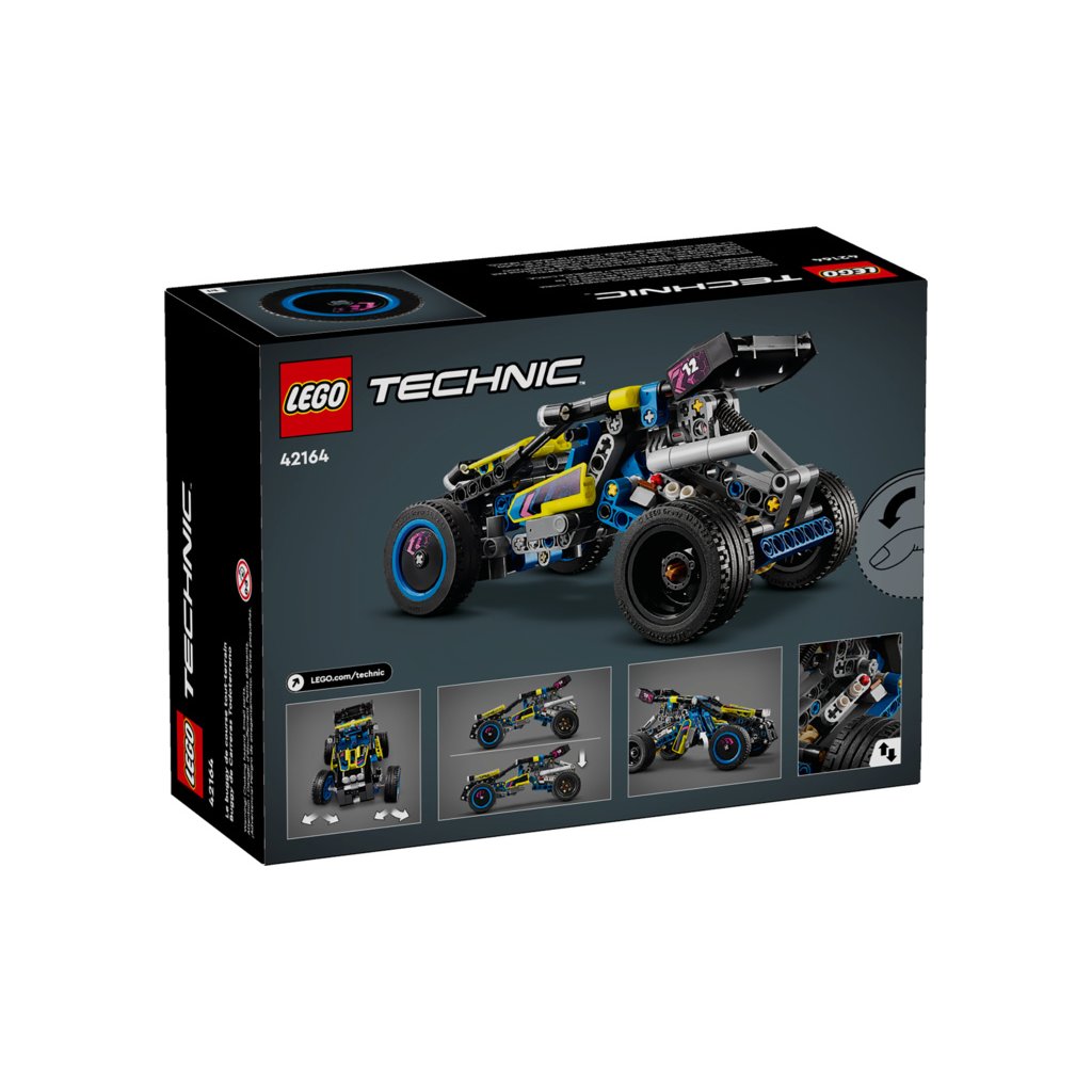 Děti od 8 let si s touto úchvatnou stavebnicí vozidla užijí pořádnou legraci. Procvičí si stavitelské dovednosti při skládání modelu LEGO® Technic (42164) Terénní závodní bugina – ale u stavění zábava nekončí! Po sestavení model otestují. Bugina se pyšní řadou autentických detailů inspirovaných skutečnými závodními buginami, jako jsou zadní tlumiče, pohyblivý 4válcový motor a posilovač řízení. Tato stavebnice je skvělým dárkem pro děti, které milují vozidla a závodní auta.