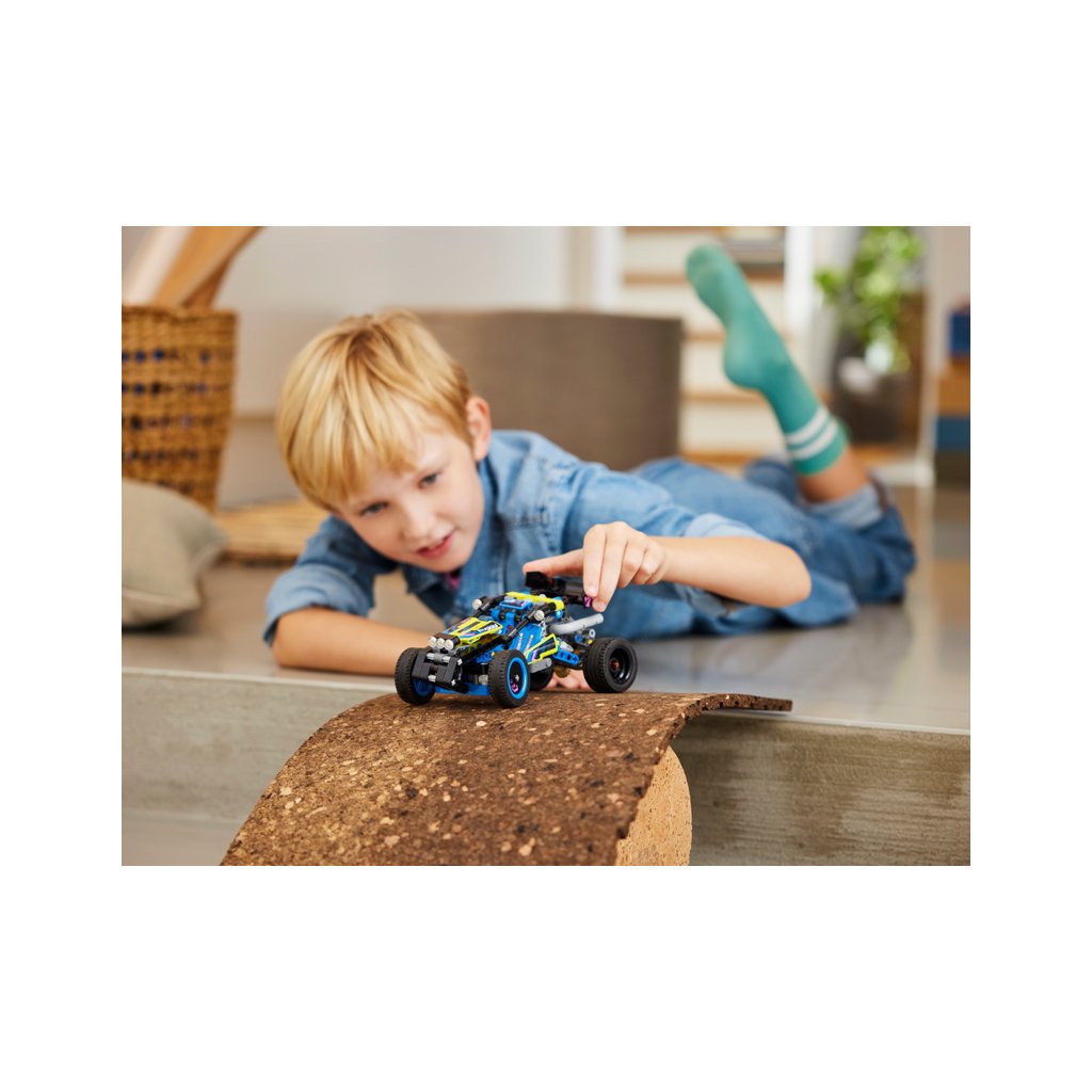 - Stavebnice pro děti od 8 let – Milovníci závodních aut si užijí velkou porci zábavy při stavění modelu LEGO® Technic Terénní závodní bugina i při hraní