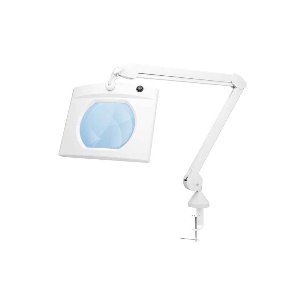 Energeticky úsporná LED Lightcraft stolní lampa s obdelníkovým držákem lupy s vysoce kvalitním širokým skleněným objektivem pro detailní a složité práce. Flexibilní kloubové rameno s dlouhým dosahem pro přesné polohování bez prokluzu. Vysoce kvalitní čočka 190 x 160 mm, 3 dioptrie (1,75x zvětšení). 62 LED se svítivostí 6300K, spotřeba 20W, napájení ze sítě. Obsahuje stolní svorku s kuželem pro extra stabilitu.