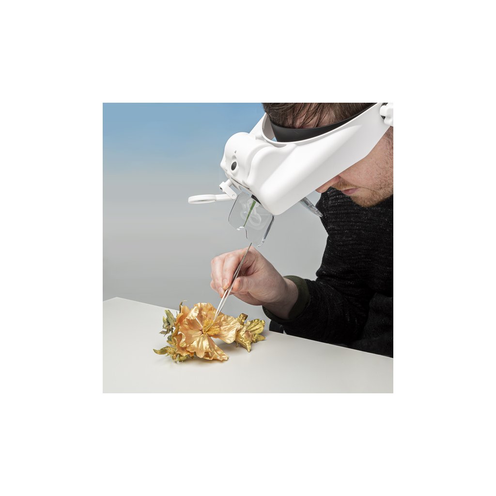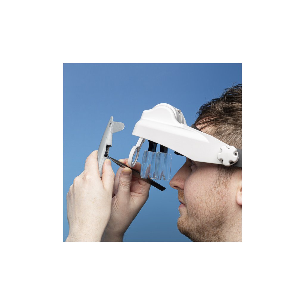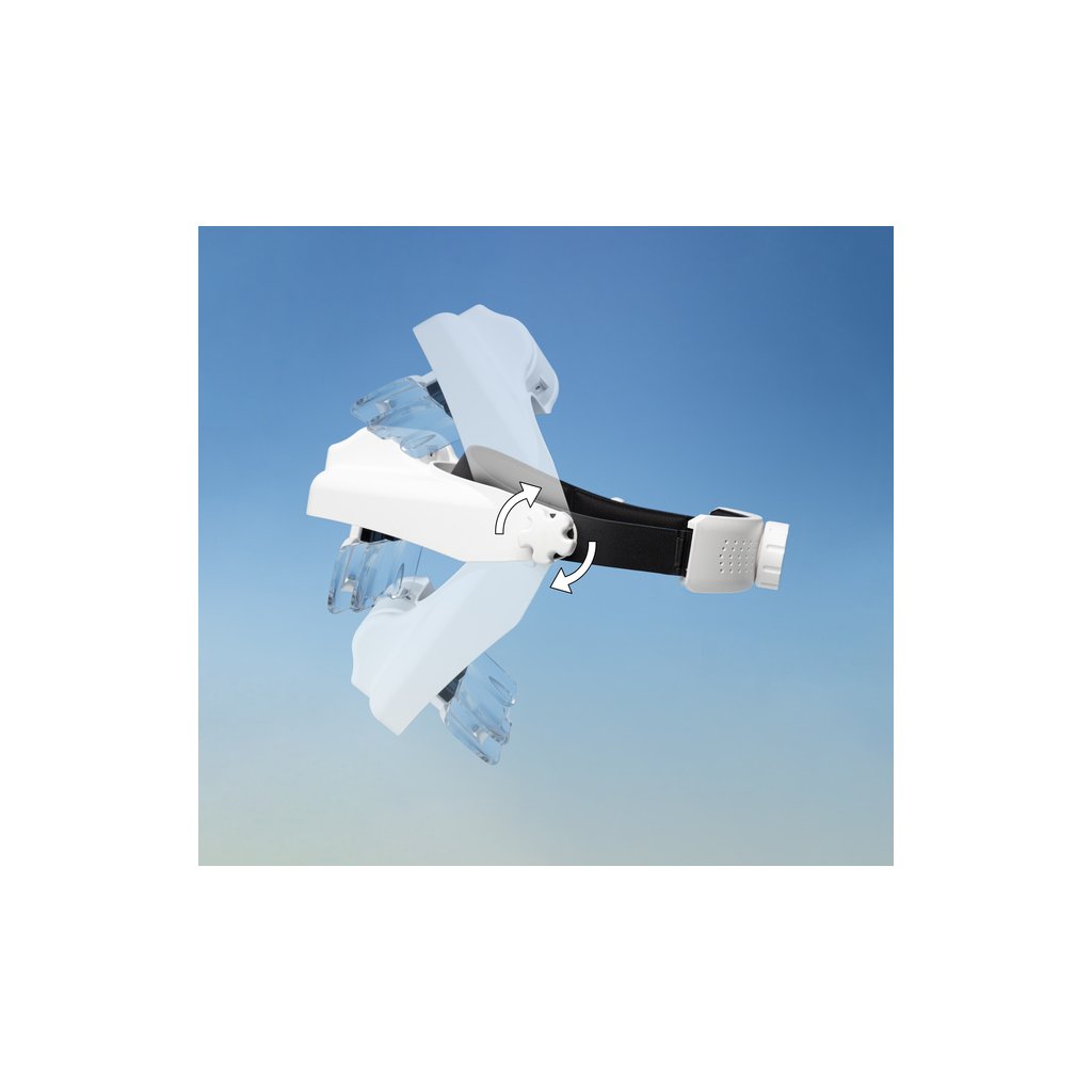 Speciální čelenka pojme dvě sady výměnný duálních objektivů, se kterými si můžete nastavit v kombinaci se třetí lupou na čelní straně čelenky 15 úrovní zvětšení od 1,0x až po 13,0x. V čelence je odnímatelné LED bodové světlo se dvěma úrovněmi jasu.