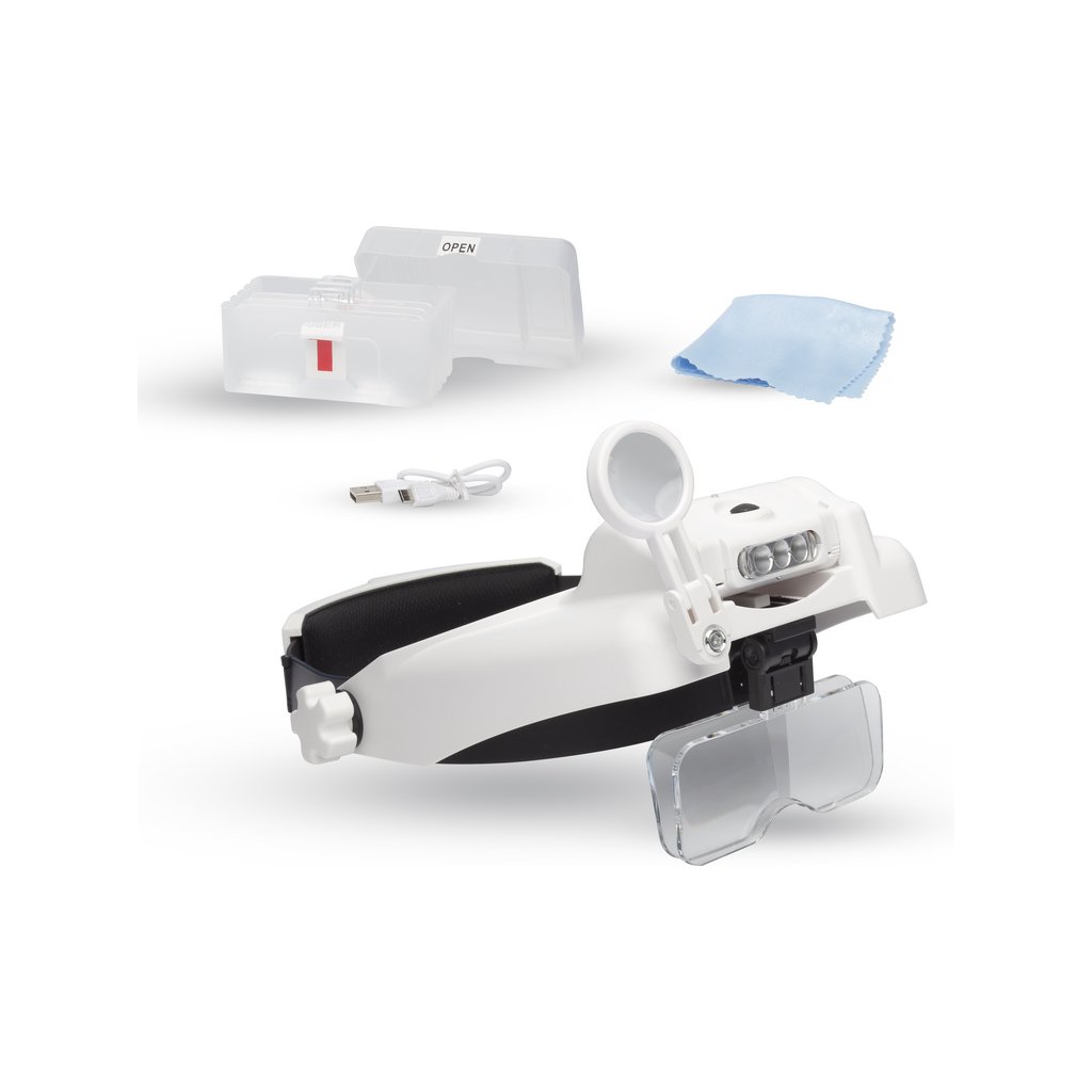 Lightcraft profesionální čelenka s lupou s LED osvětlením vám pomůže při detailní práci, když potřebujete mít volné ruce. Pohodlná, polstrovaná čelenka s integrovanou nabíjecí baterií. Pružná čelenka je na každou velikost hlavy, v balení je 5 výměnných duálních objektivů s ohniskovou vzdáleností od 35 mm do 350 mm a zvětšením 1x až 13x v kombinaci s čelní výkyvnou lupou. Možnost nastavení 2 úrovní intenzity osvětlení a vertikální pozice osvětlení.
