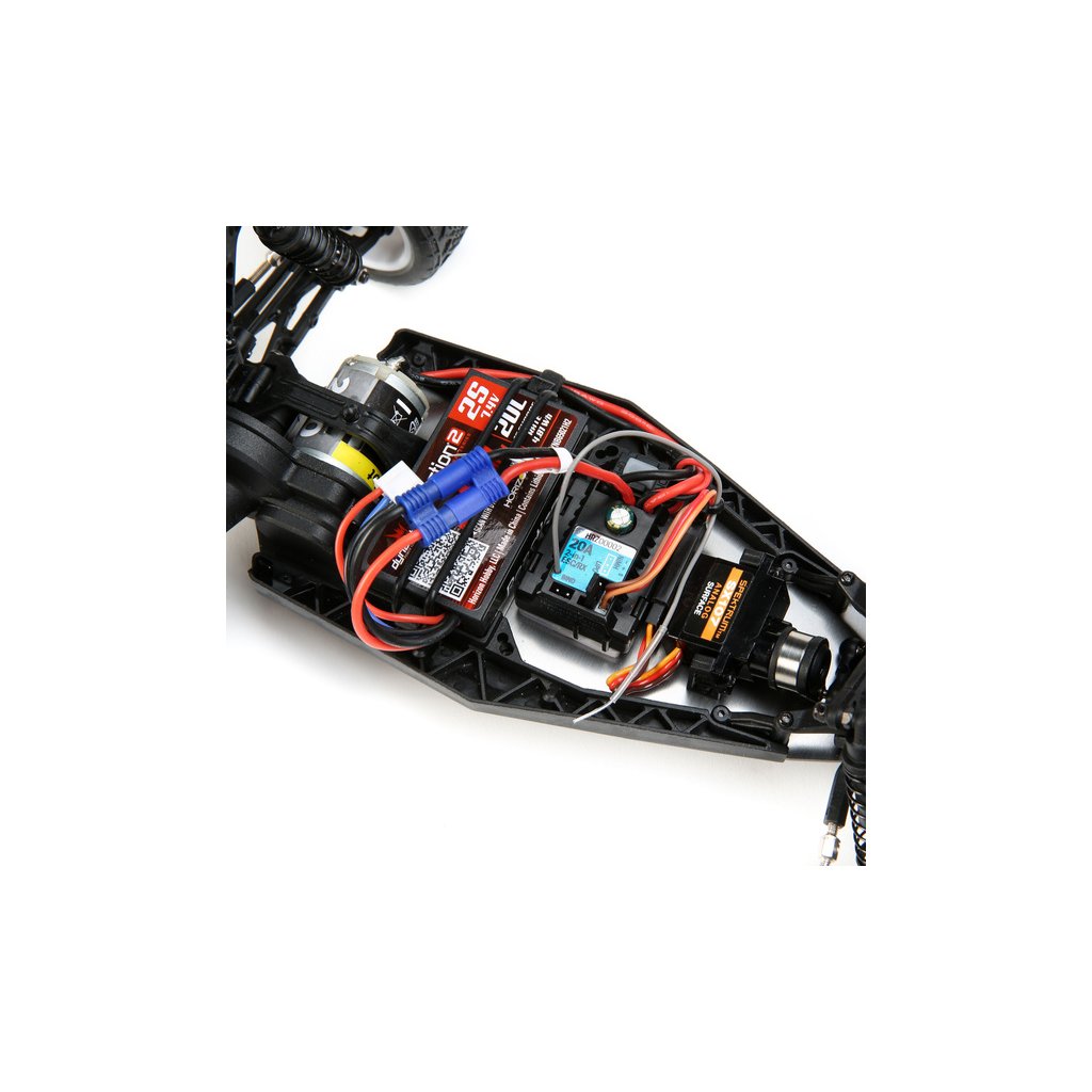 RC model auta Losi Mini-B 1:16 je připraven k jízdě s karosérií ve třech barevných provedeních. Olejové tlumiče dovolí jízdu v terénu i na silnici, dlouhá ramena náprav s vysokým zdvihem si snadno poradí s každým povrchem. Výkonný motor 280, hliníkové šasí, baterie LiPol 2S 650mAh. S autem Mini-B můžete závodit na zahradě, na parkovišti nebo venku v terénu. Nenáročný a skladný model pro zábavu s přáteli, model má proporcionální ovládání, řízení zajišťuje mini servo Spektrum se servosaverem na výstupní hřídeli, k ovládání je přiložen vysílač v pásmu 2,4GHz.