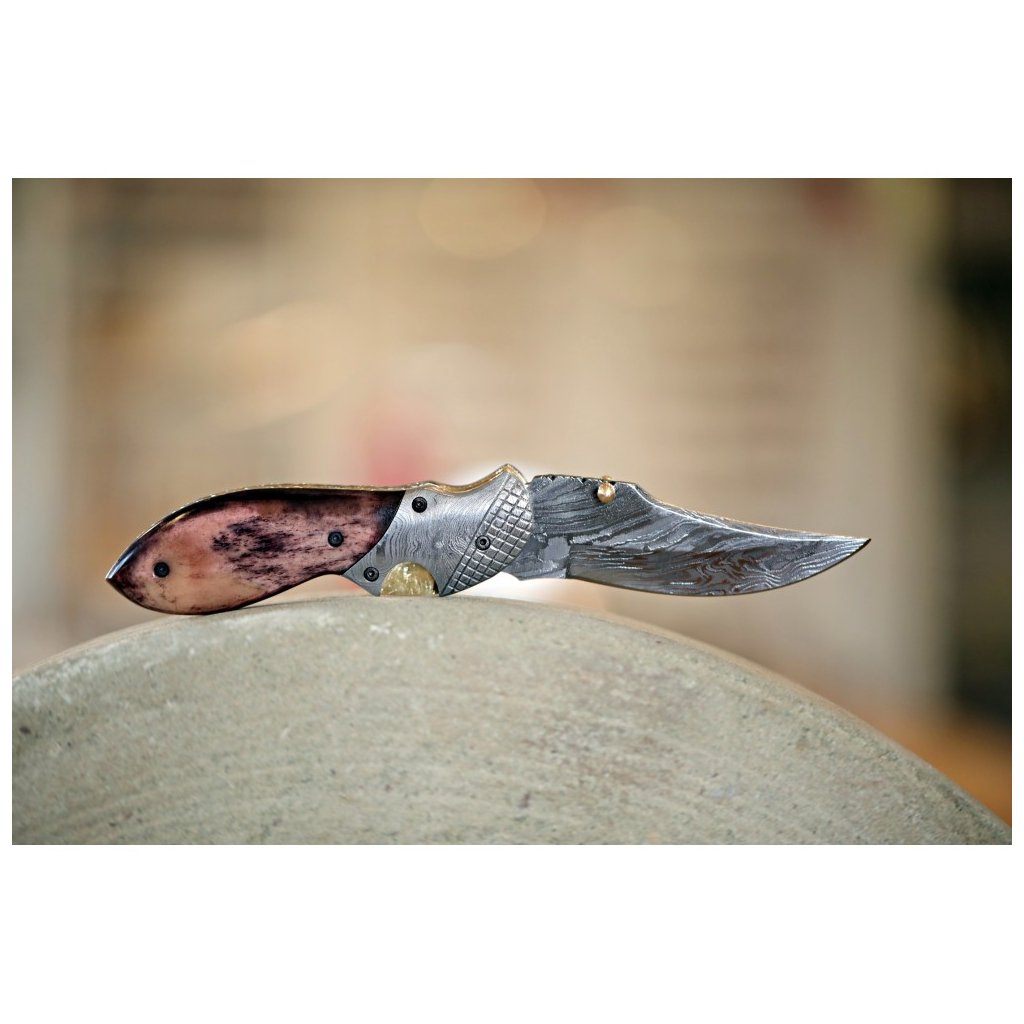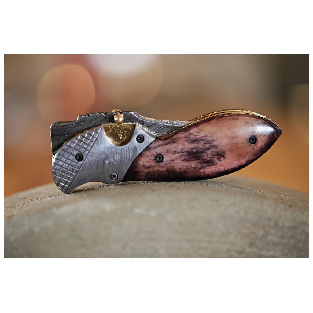 Damaškový zavírací nůž Dellinger Schnabel s rukojetí z velbloudí kosti