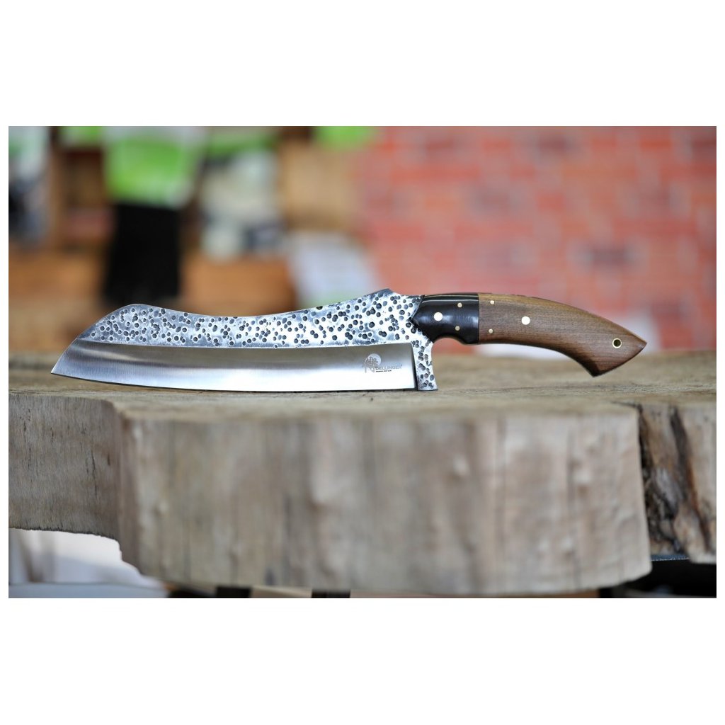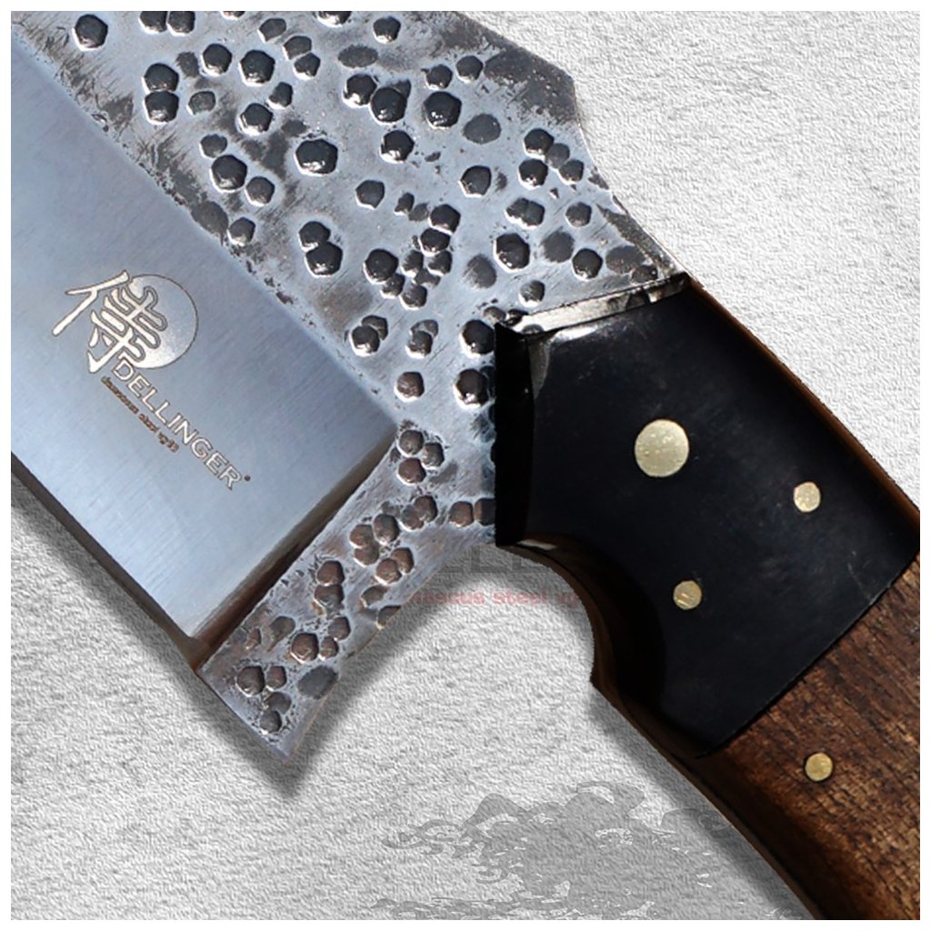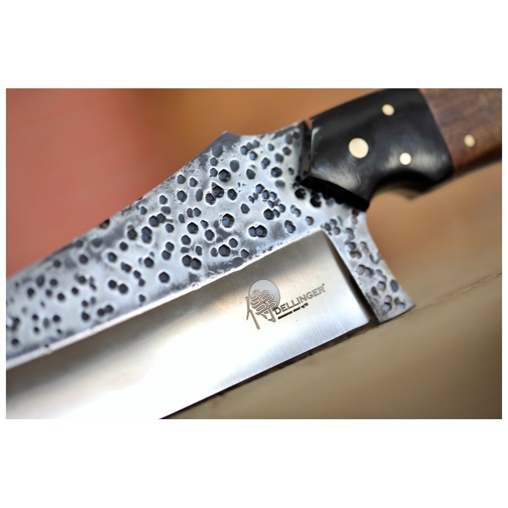 Exkluzivní mačeta Dellinger Executive představuje vrcholný nástroj pro ty, kteří hledají nekompromisní výkon a luxusní design. Je ručně kovaná z vysoce kvalitní nástrojové oceli D2, která je známá svou extrémní odolností a schopností držet ostří i při náročném sekání. Rukojeť kombinuje krásu ořechového dřeva s elegancí buvolího rohu, což z každého kusu činí unikát.