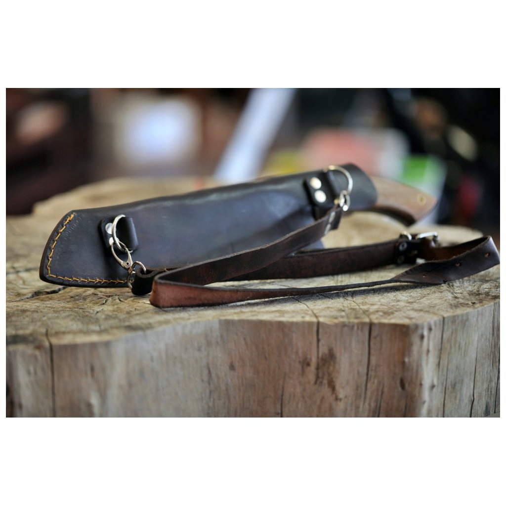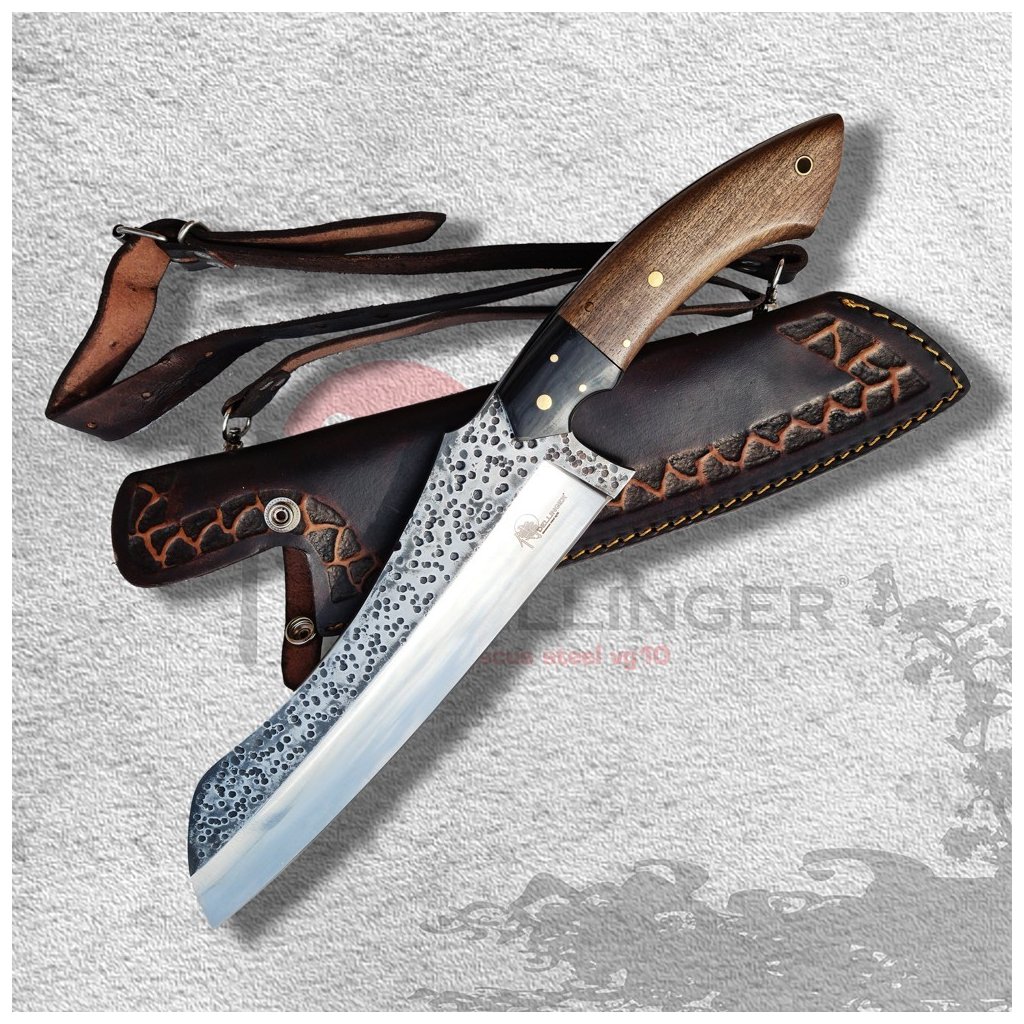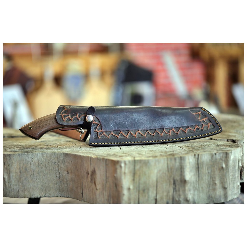 Exkluzivní mačeta Dellinger Executive představuje vrcholný nástroj pro ty, kteří hledají nekompromisní výkon a luxusní design. Je ručně kovaná z vysoce kvalitní nástrojové oceli D2, která je známá svou extrémní odolností a schopností držet ostří i při náročném sekání. Rukojeť kombinuje krásu ořechového dřeva s elegancí buvolího rohu, což z každého kusu činí unikát.