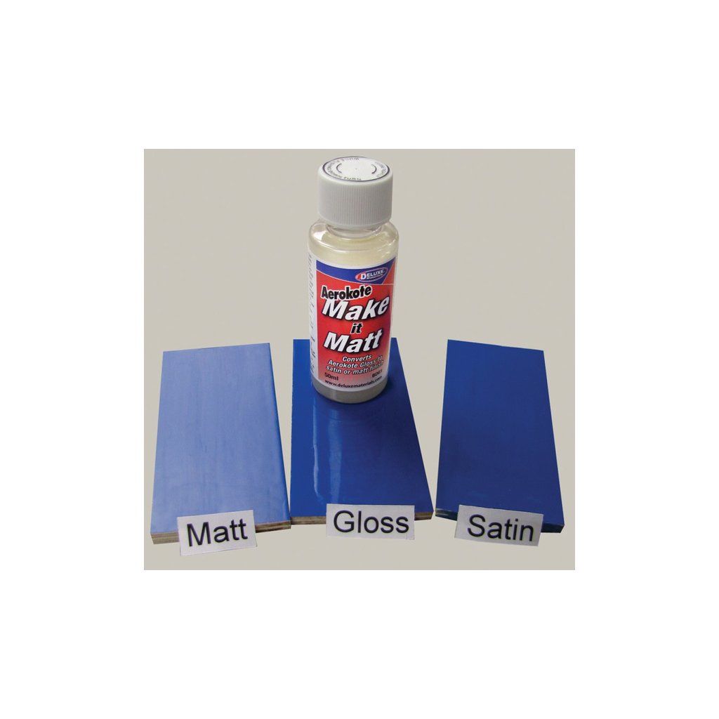 Přípravek Make it Matt slouží pro zmatnění laku Aerokote. Plného matu dosáhnete smícháním laku Aerokote s přípravkem Make it Matt v poměru 1:1. Pololesku dosáhnete poměrem 3:1, polomatu 2:1.