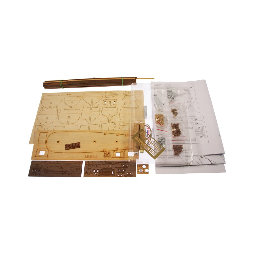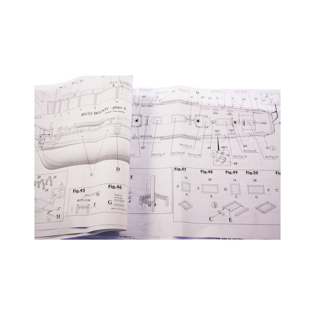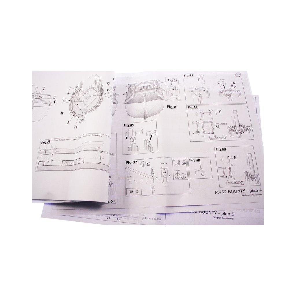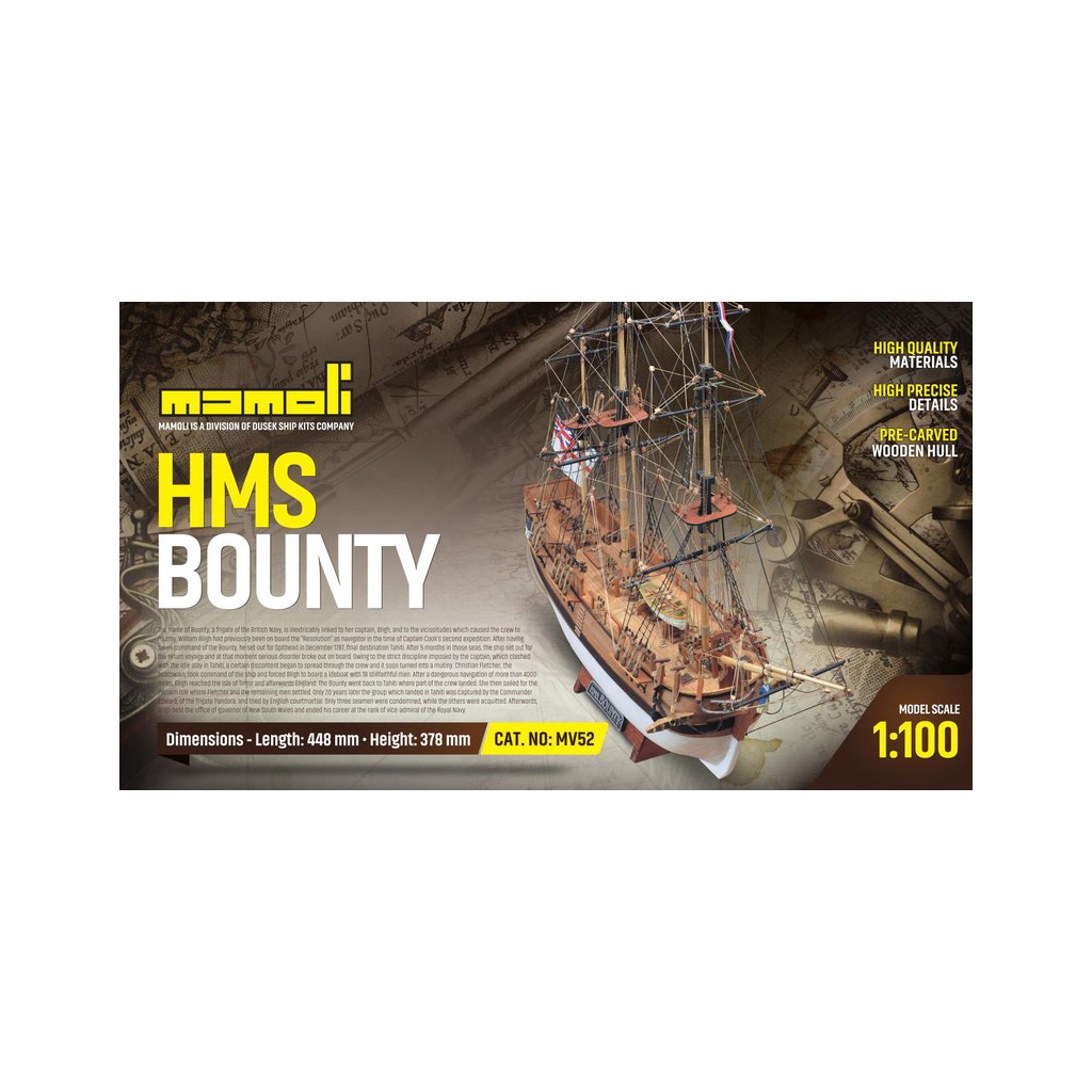 Stavebnice neplovoucího modelu MAMOLI H.M.S. Bounty v měřítku 100 z roku 1787. Slavná fregata britského námořnictva je spjata se jménem kapitána Bligh. Posádka se vzbouřila, Christian Fletcher obsadil velení a kapitána s několika muži vysadili na člunu na širém moři. V balení stavebnice jsou dřevěné díly, lišty a množství kování, lanoví, plány atd.