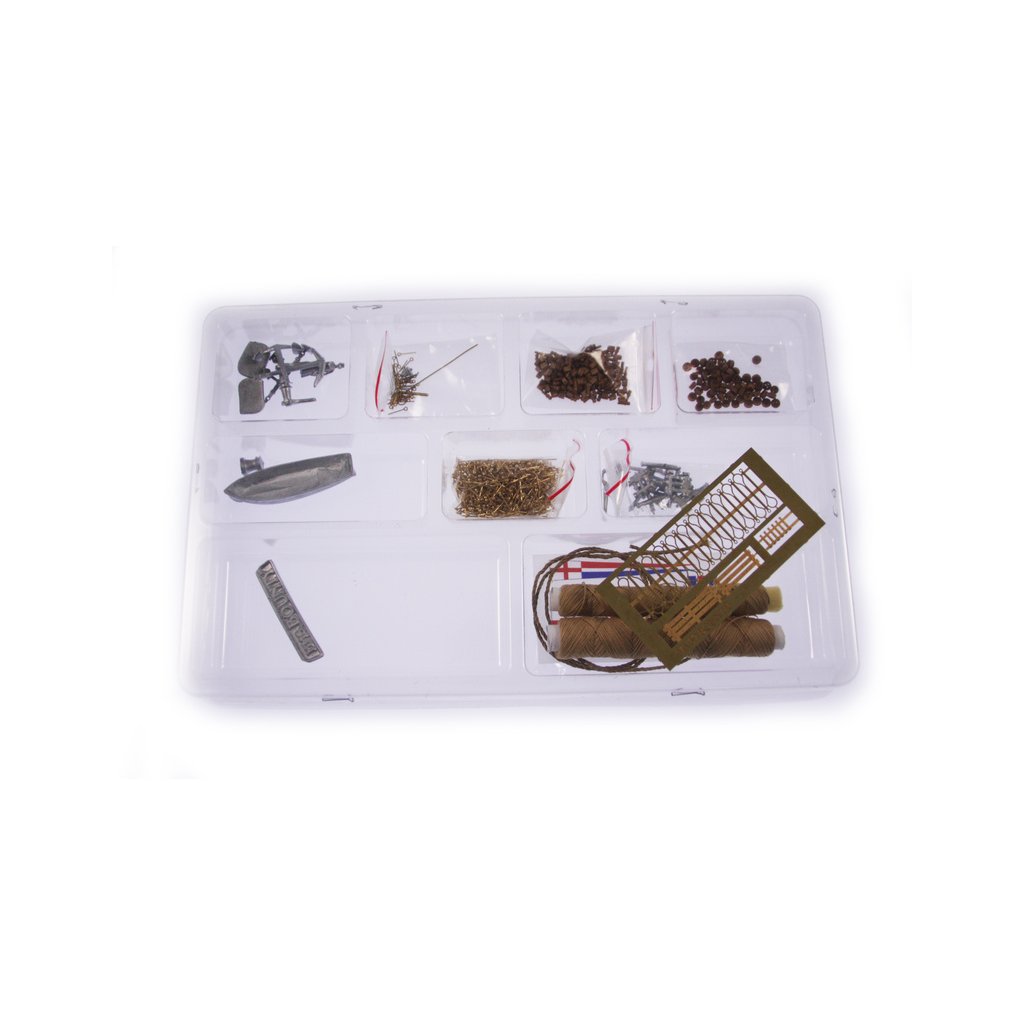 Ke stavbě modelů lodí je nutné vhodné nářadí. Doporučujeme výbornou sadu Modelcraft nářadí pro lodní modeláře (sada 12ks), nebo Modelcraft nářadí pro modeláře (sada 18ks). Dále doporučujeme koupi nylonových svorek a nepostradatelné modelářské špendlíky. Pro úpravu, přesné řezaní, lepení dílů a také jako ochranu stolu doporučujeme modelářskou podložku.