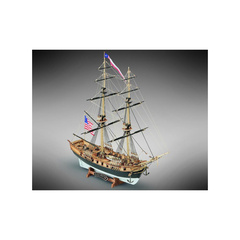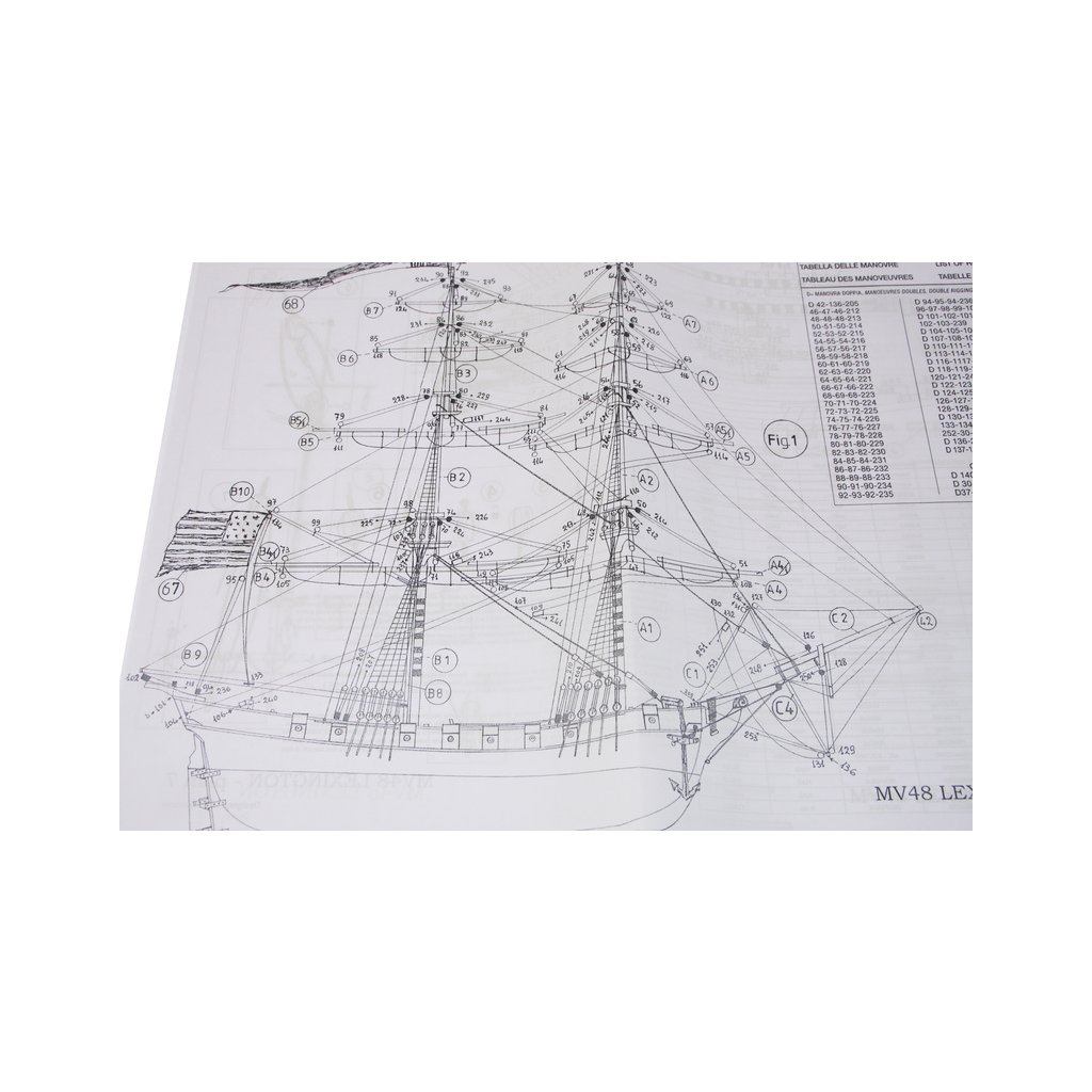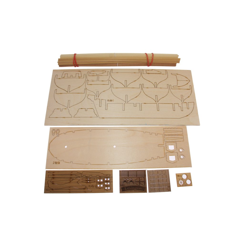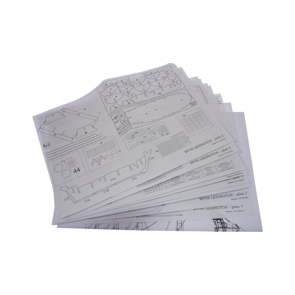 Stavebnice neplovoucího modelu MAMOLI Lexington v měřítku 1:100 z roku 1775. Loď patřila k lodím, které musely být přestavěny během války proti Anglii v roce 1775/77 ve Philadelphii, na válečné lodě. Lexington 7. dubna 1776 svedl vítěznou bitvu proti Corvetě Edward. V balení jsou dřevěné díly, lišty a množství kování, příslušenství, plány atd.