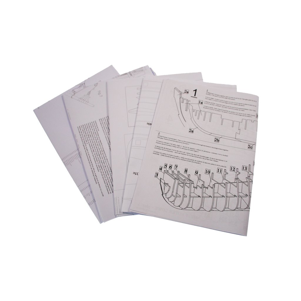 Set obsahuje kompletní sadu výkresové dokumentace modelu v měřítku 1:1 s postupem stavby, na výkrese jsou pečlivě označeny díly a je zde i seznam jednotlivých součástí modelu.
