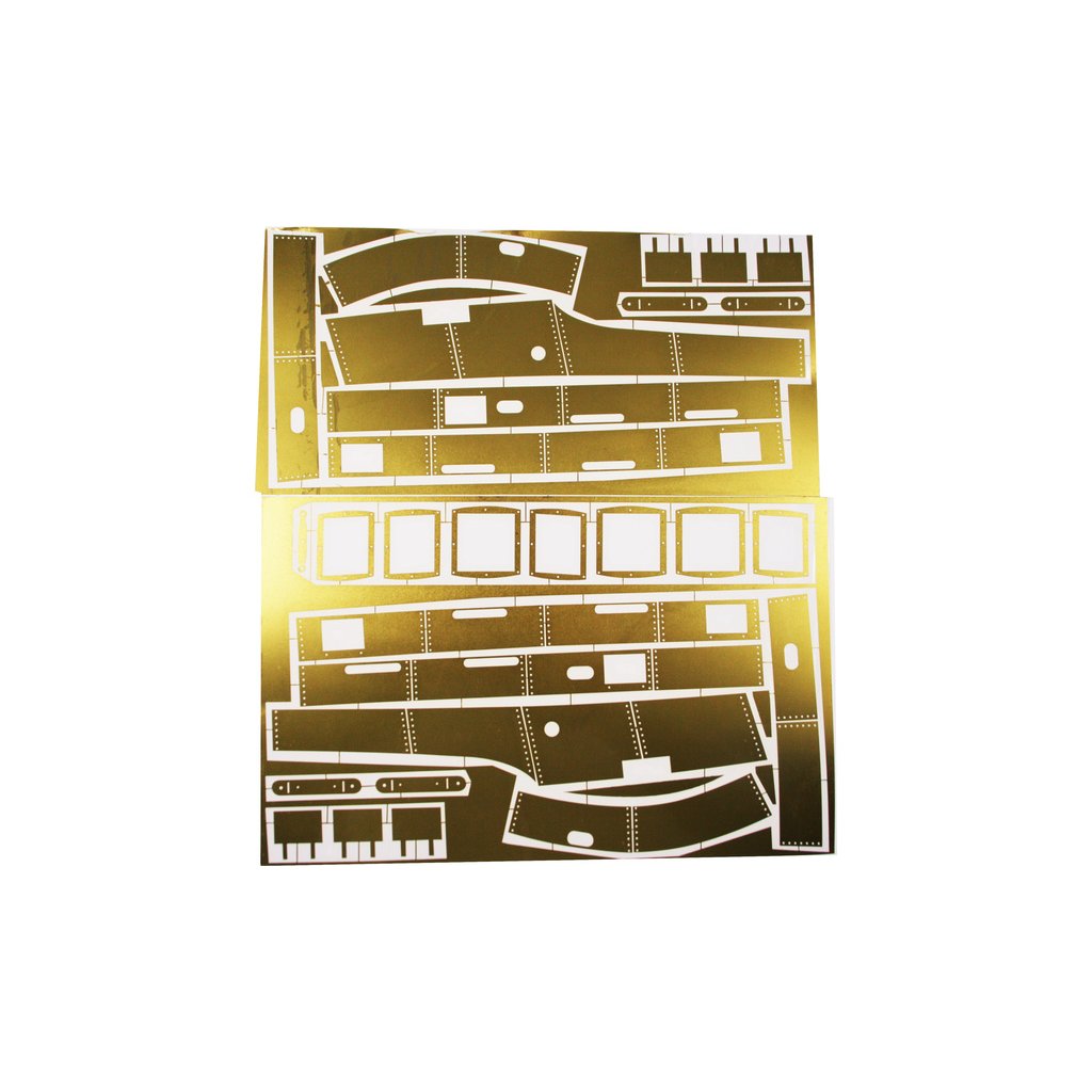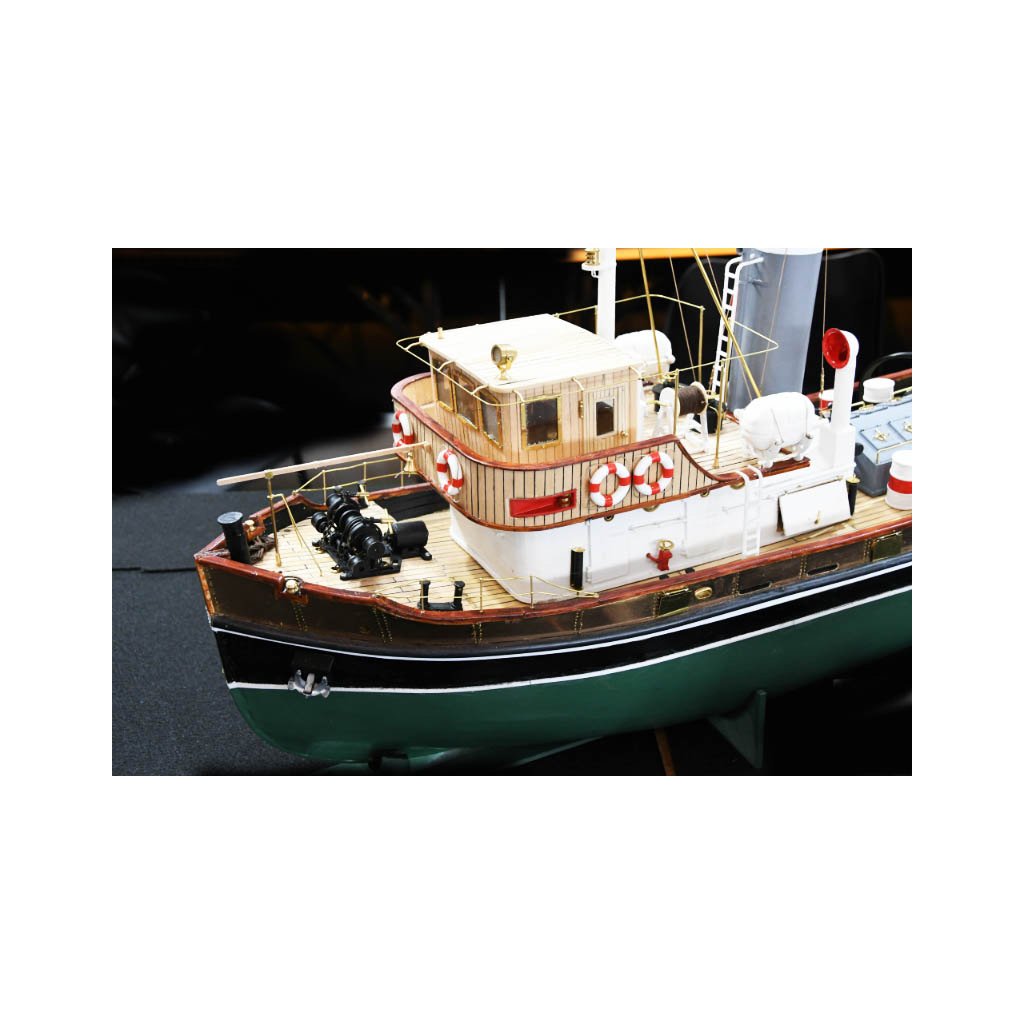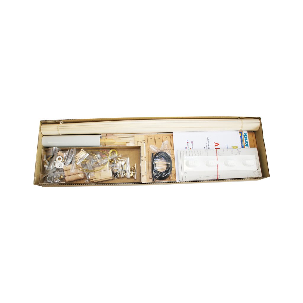 Balení obsahuje sadu překližkových dílů, sadu dřevěných lišt o různém průřezu, sáčky s drobnými díly, součásti z mosazného plechu, kovové odlitky, mosazné součásti na sestavení navijáku, kovový lodní šroub s hřídelí, plastová trubka na komín, kormidelní kolo, motouzy, gumové těsnění, plastový výlisek, sadu výkresů a vícejazyčný manuál.