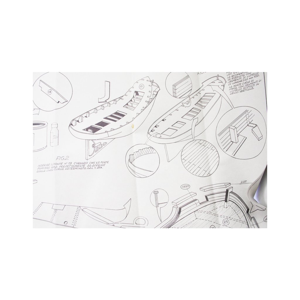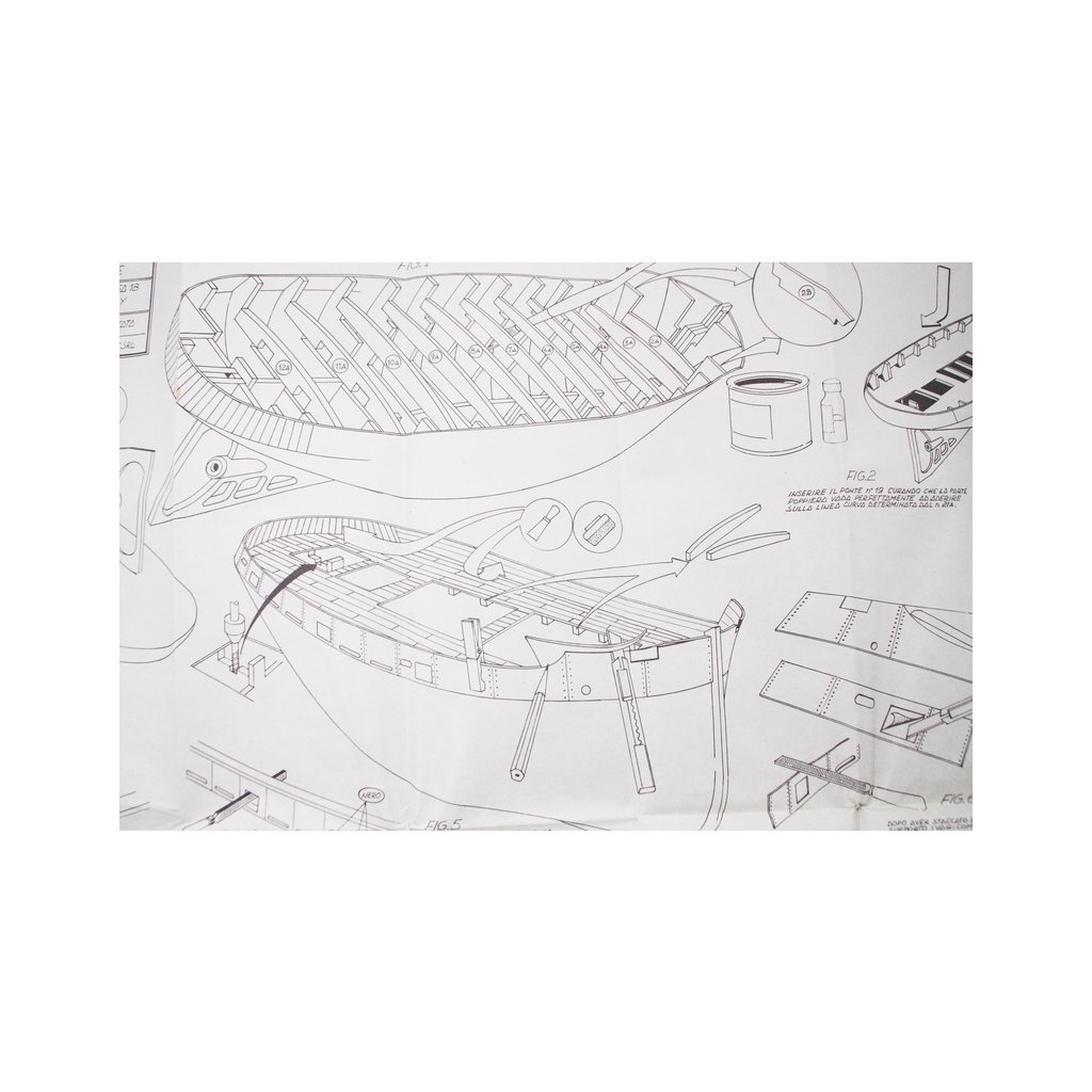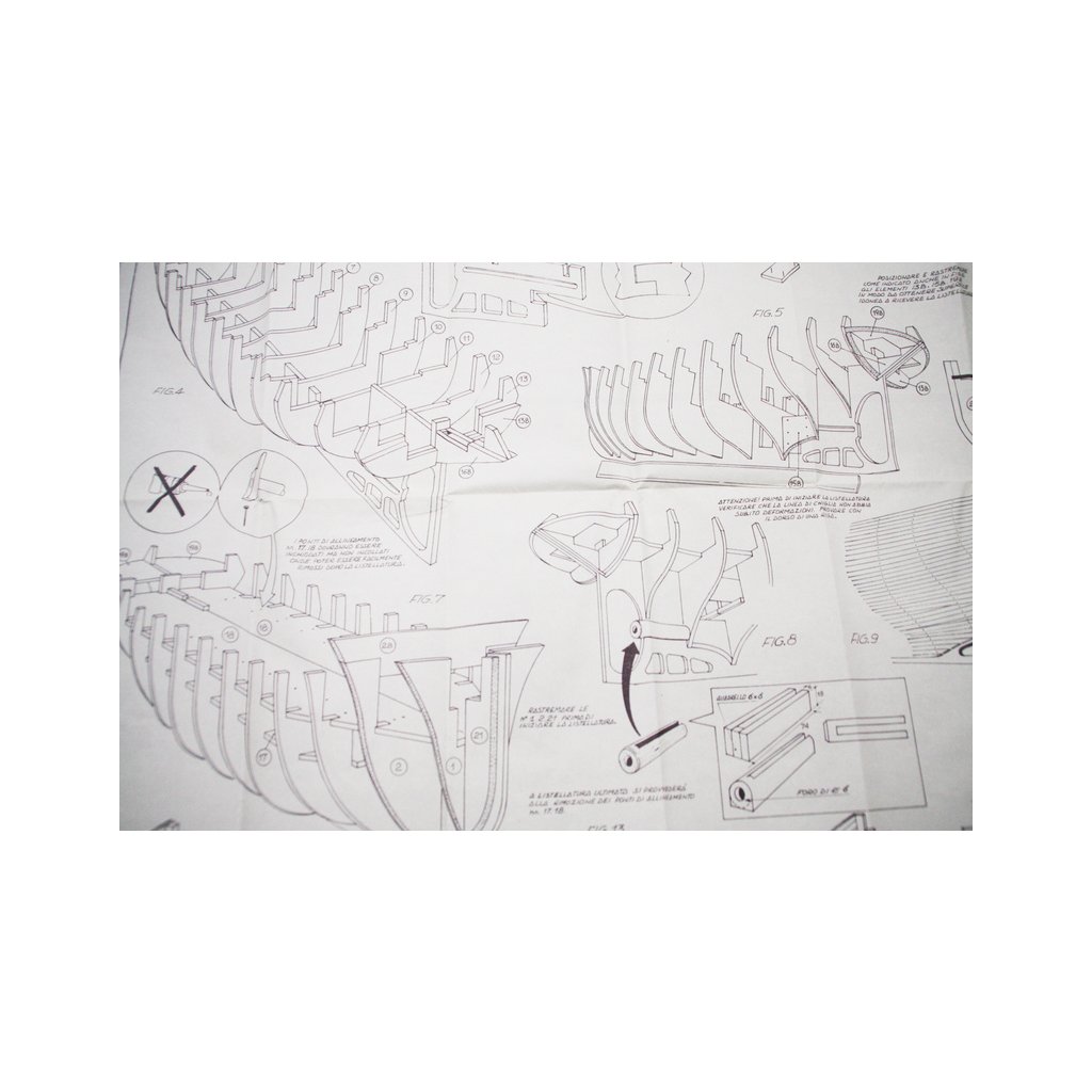 Set obsahuje kompletní sadu výkresové dokumentace modelu v měřítku 1:1 s obrázky jednotlivých detailů. Na výkrese jsou v měřítku nakresleny montážní sestavy, jejich kompletace a to včetně stěžňů a ráhen a způsob vázání lanoví. Vícejazyčný postup stavby rámcově upravuje logické sestavení jednotlivých komponentů.