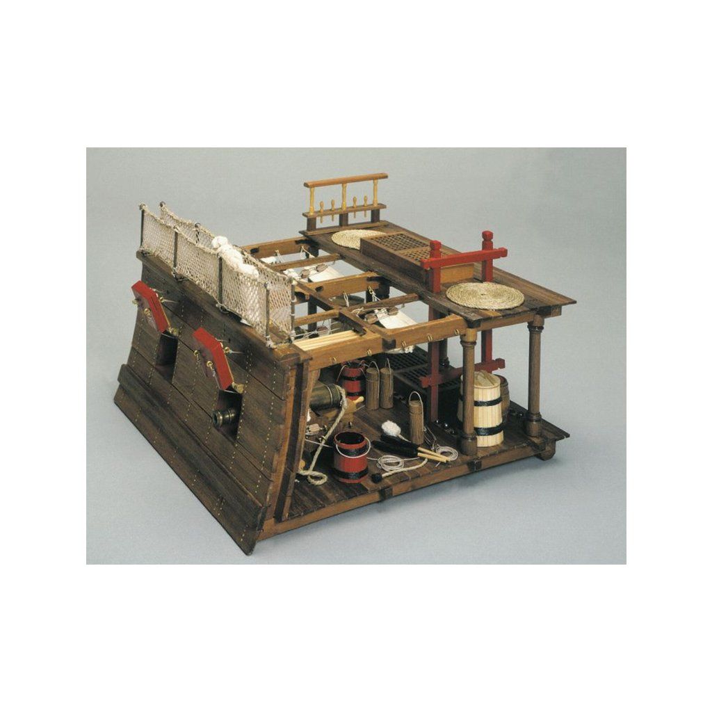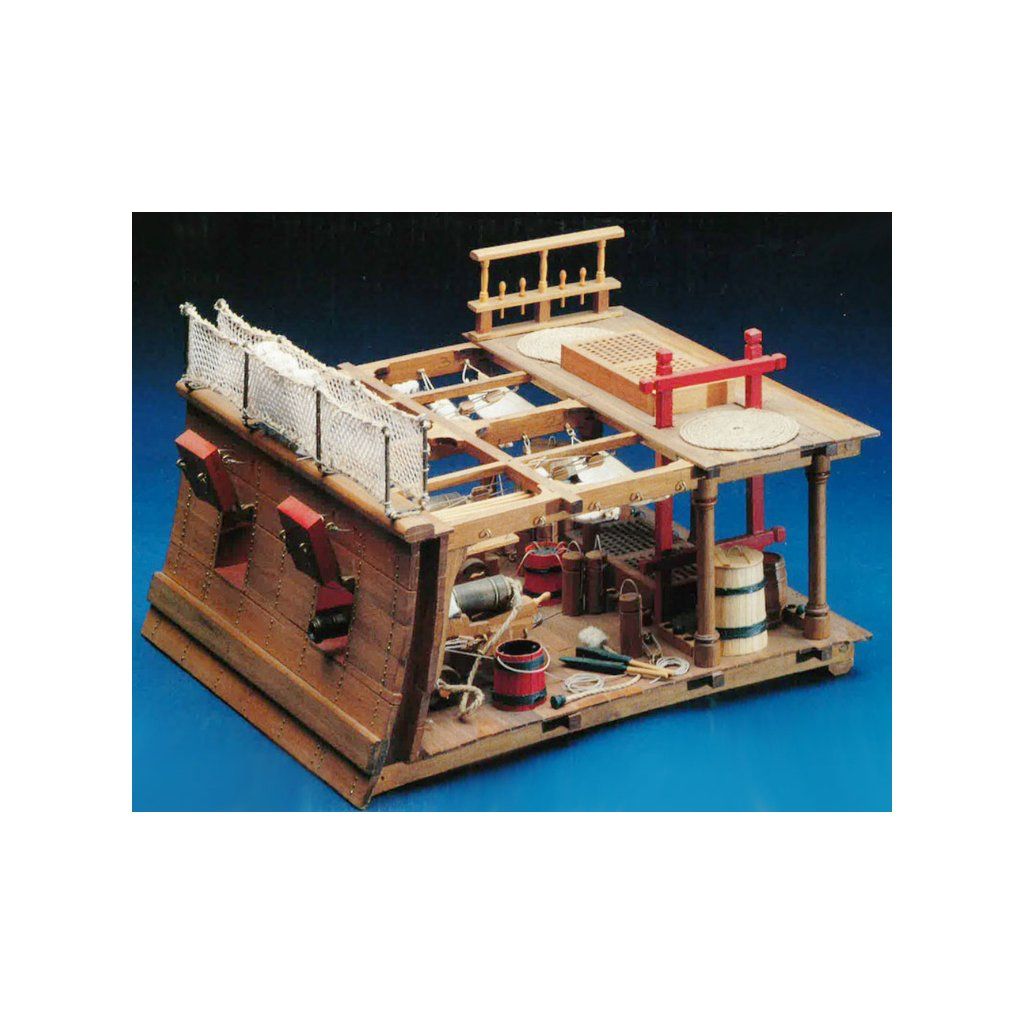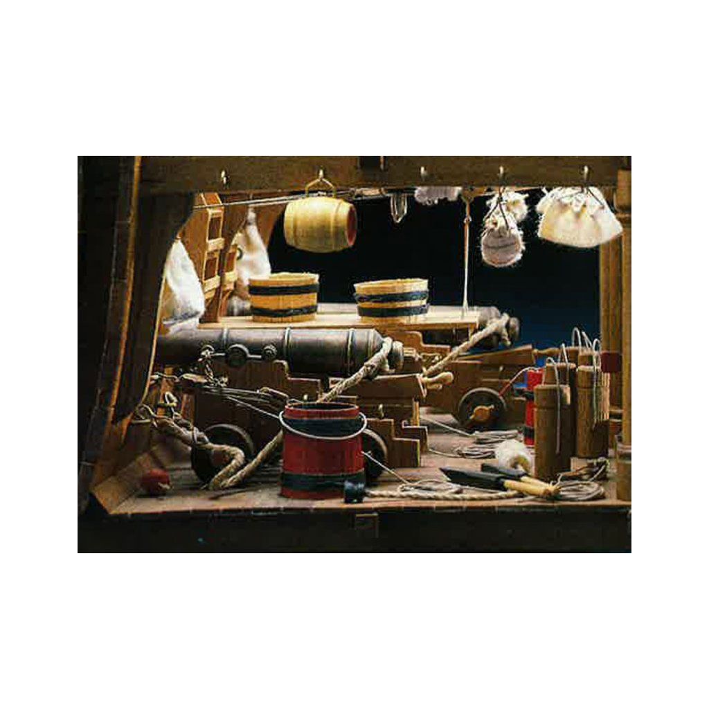 Mantua Model Dělová paluba řez v měřítku 1:23 kit, je model střeleckého stanoviště na typické britské válečné lodi z počátku 18. století. Sada obsahuje všechny díly, potřebné k dokončení modelu, rozměry 250 x 250 x 170mm. dvě 100mm dlouhá soustružená mosazná děla na vozících z ořechového dřeva, kbelíky, náboje, zátky, nádoby na prach, stoly a lavice, střelný prach a sudy s vodou.