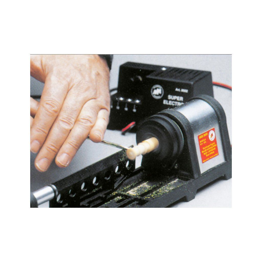 Mantua Model Elektrický minisoustruh 12V umožní soustružit vlastní drobné dřevěné součásti pro modely lodí. Zařízení je vyrobeno výhradně z nylonu vyztuženého skelnými vlákny a obsahuje tříčelisťové sklíčidlo, koník, oboustrannou podpěru nástroje a sadu hrotů pro pinolu. Dřevěné tyče do max. Ø 12 mm lze upnout do sklíčidla. Délka mezi hrotem koníku a sklíčidlem je do 200mm. Jako zdroj je doporučen Mantua Model Síťový zdroj 9,12,15,18V 10A nebo lze použít jiný vhodný nastavitelný 12V zdroj s proudem minimálně 10A.