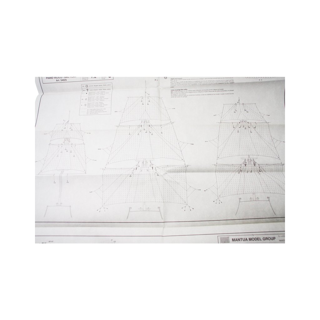 Set obsahuje kompletní sadu výkresové dokumentace modelu v měřítku 1:1 s obrázky jednotlivých detailů. Na výkrese jsou v měřítku nakresleny montážní sestavy, jejich kompletace a to včetně stěžňů a ráhen a způsob vázání lanoví. Vícejazyčný postup stavby rámcově upravuje logické sestavení jednotlivých komponentů.