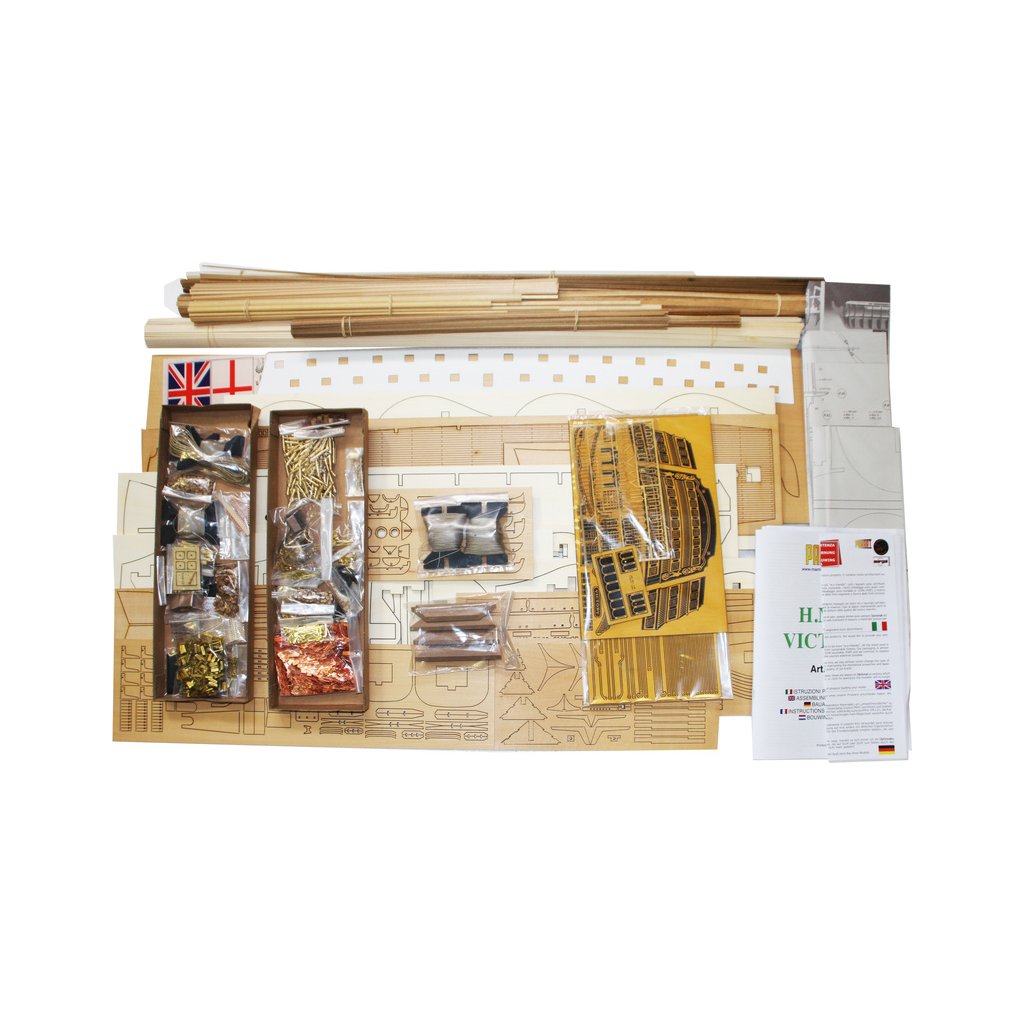 Tato stavebnice představuje skvělý model vlajkové lodi admirála Lorda Nelsona během bitvy u Trafalgaru 21. října 1805 a je nejslavnější z velkých britských bojových lodí. Lze ji vidět v loděnici v Portsmouthu, kde je zachována pro další generace. Osm listů stavebního plánu, které kromě hlavních pohledů obsahují množství perspektivních kreseb, usnadňuje sestavení tohoto atraktivního modelu.