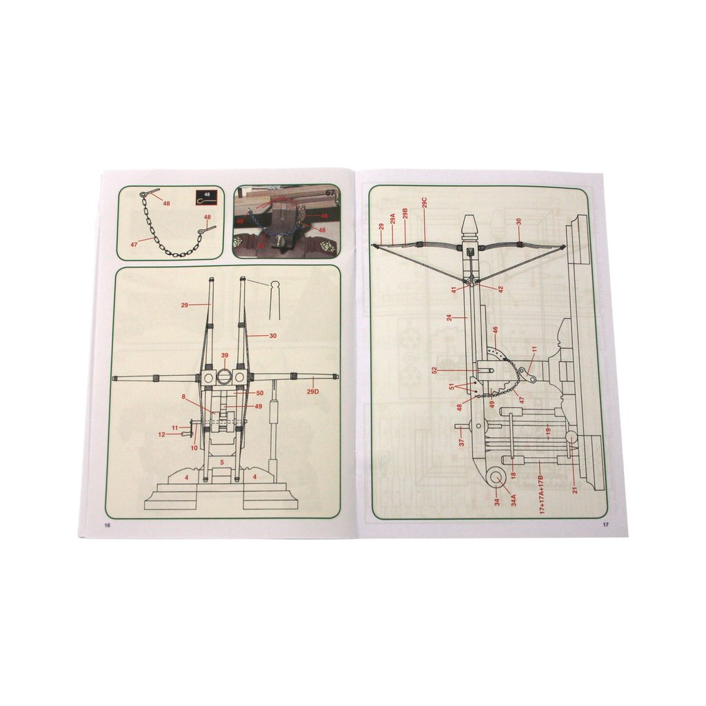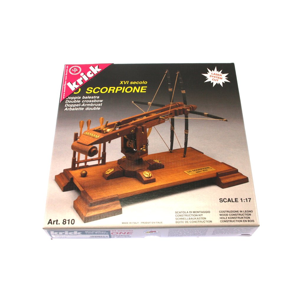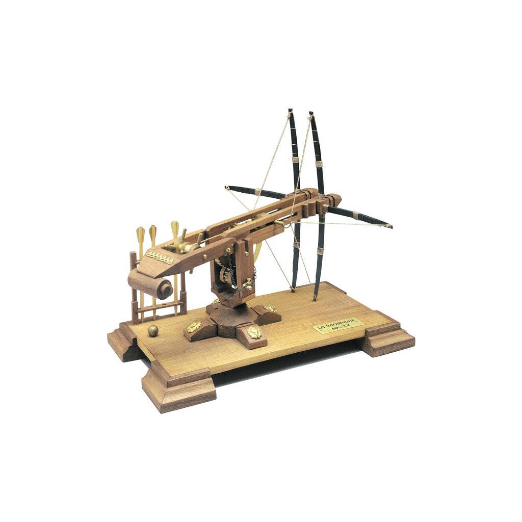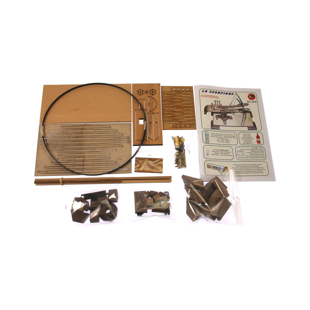 Stavebnice modelu Římského katapultu v měřítku 1:17. Model je maketou vrhací zbraně v podobě dvojité kuše z 15. a 16. století. Tuto kuši s dostřelem přes 200 metrů, lze považovat za předchůdce palných zbraní. Konstrukce se skládá z předem nařezaných dřevěných dílů a kovových litých ozdob.