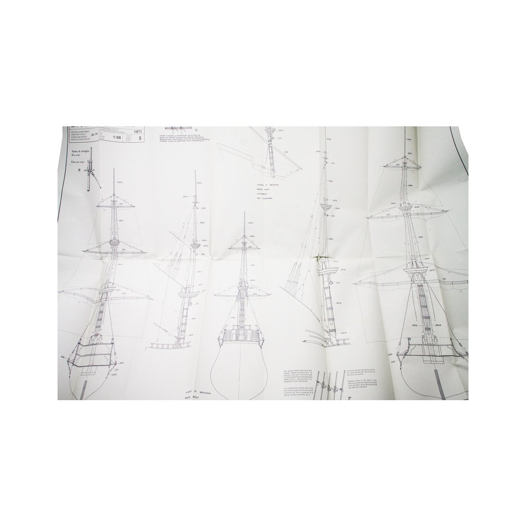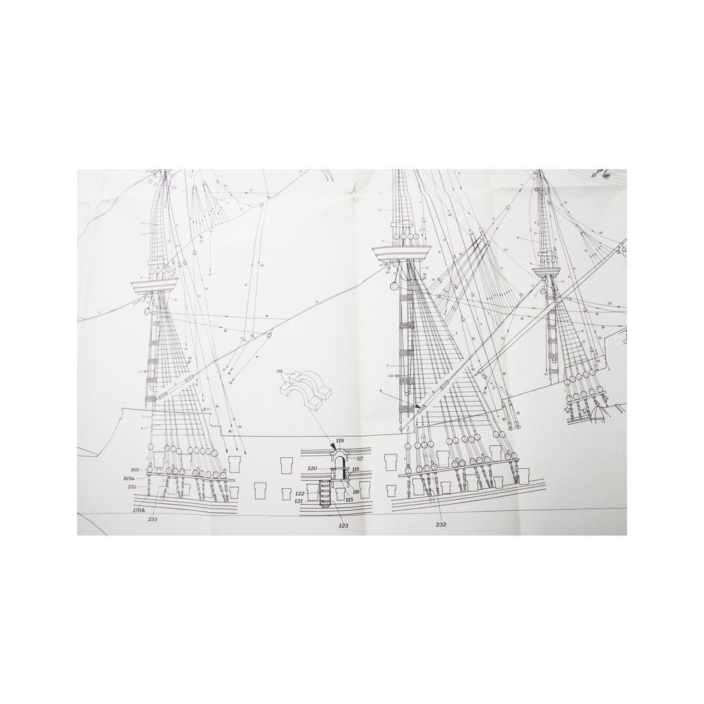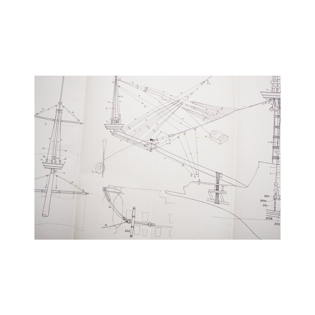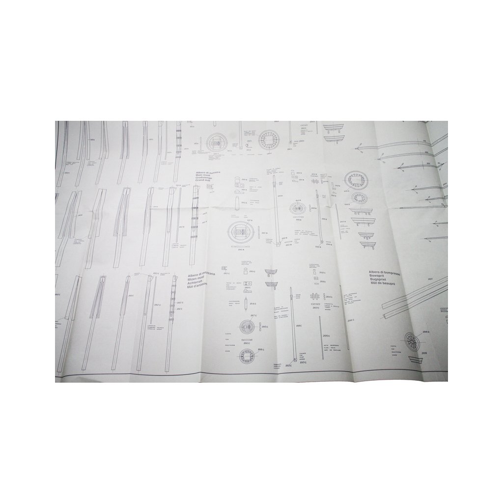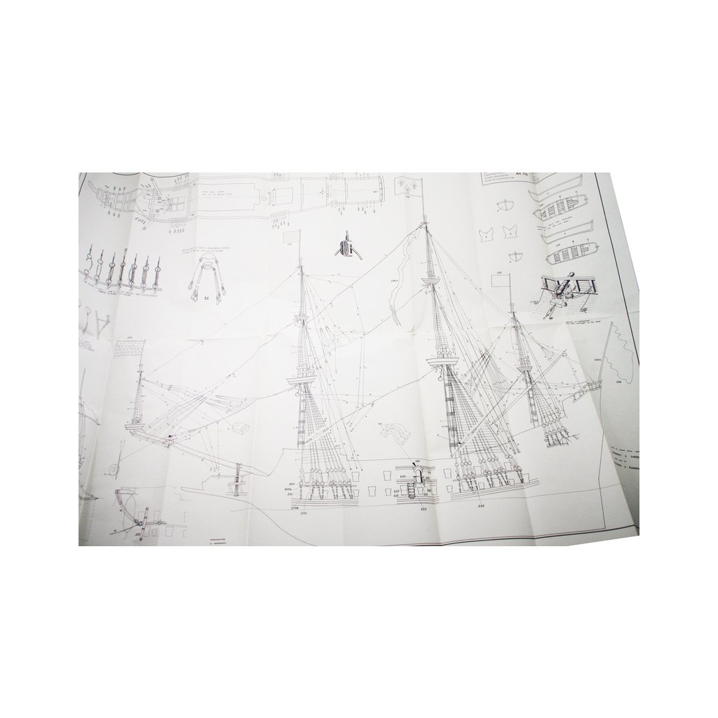 Set obsahuje kompletní sadu výkresové dokumentace modelu v měřítku 1:1 s obrázky jednotlivých detailů. Na výkrese jsou v měřítku nakresleny montážní sestavy, jejich kompletace a to včetně stěžňů a ráhen a způsob vázání lanoví. Vícejazyčný postup stavby rámcově upravuje logické sestavení jednotlivých komponentů.