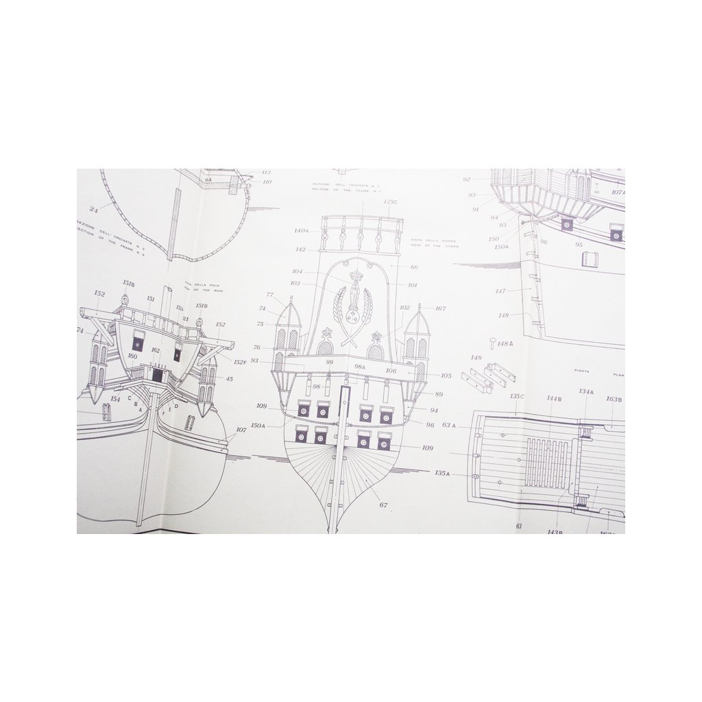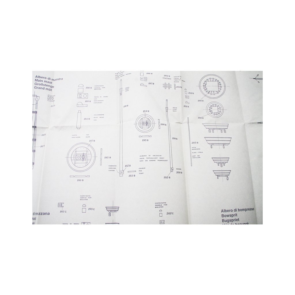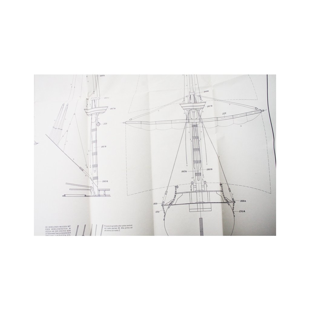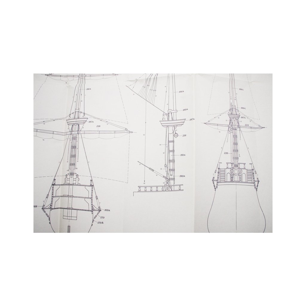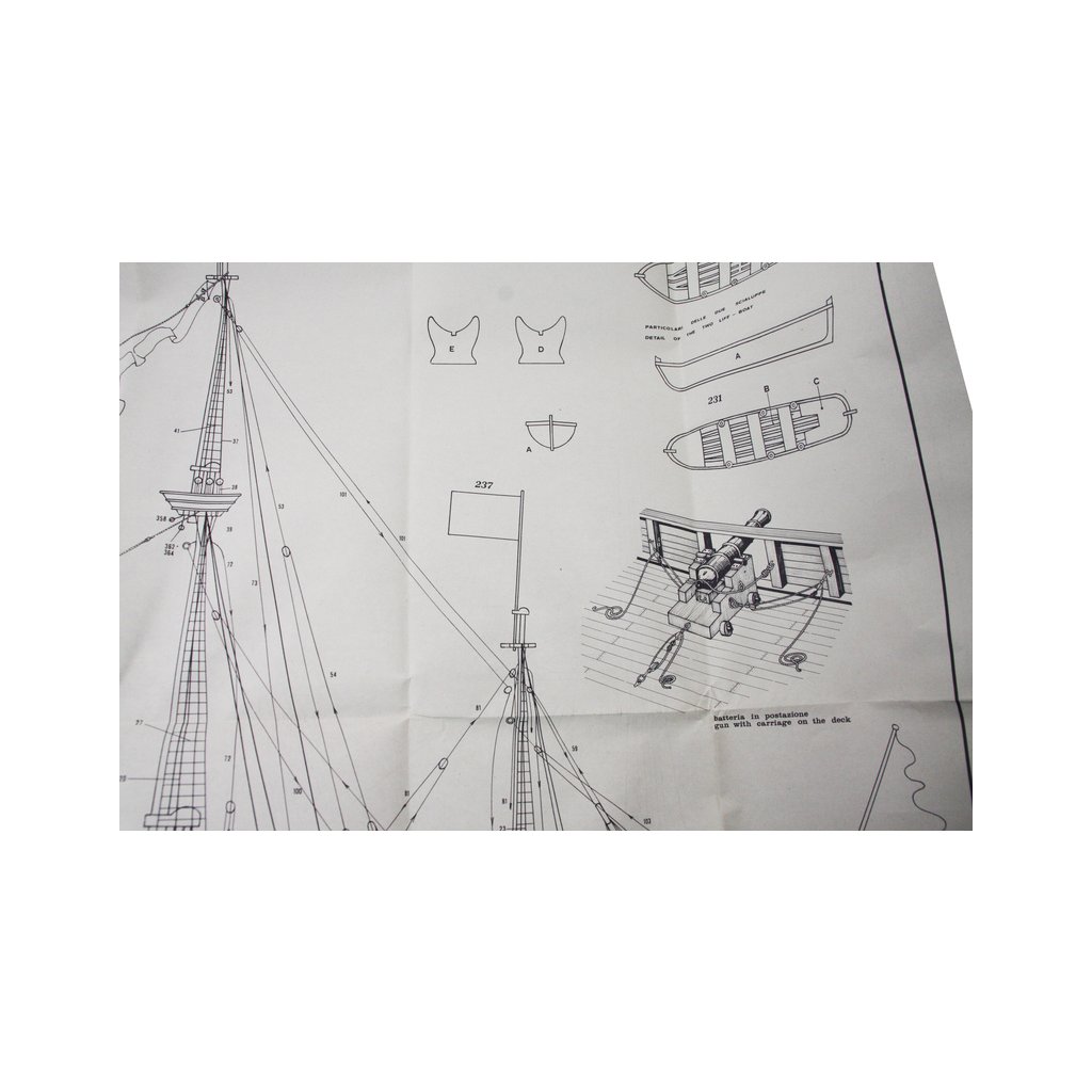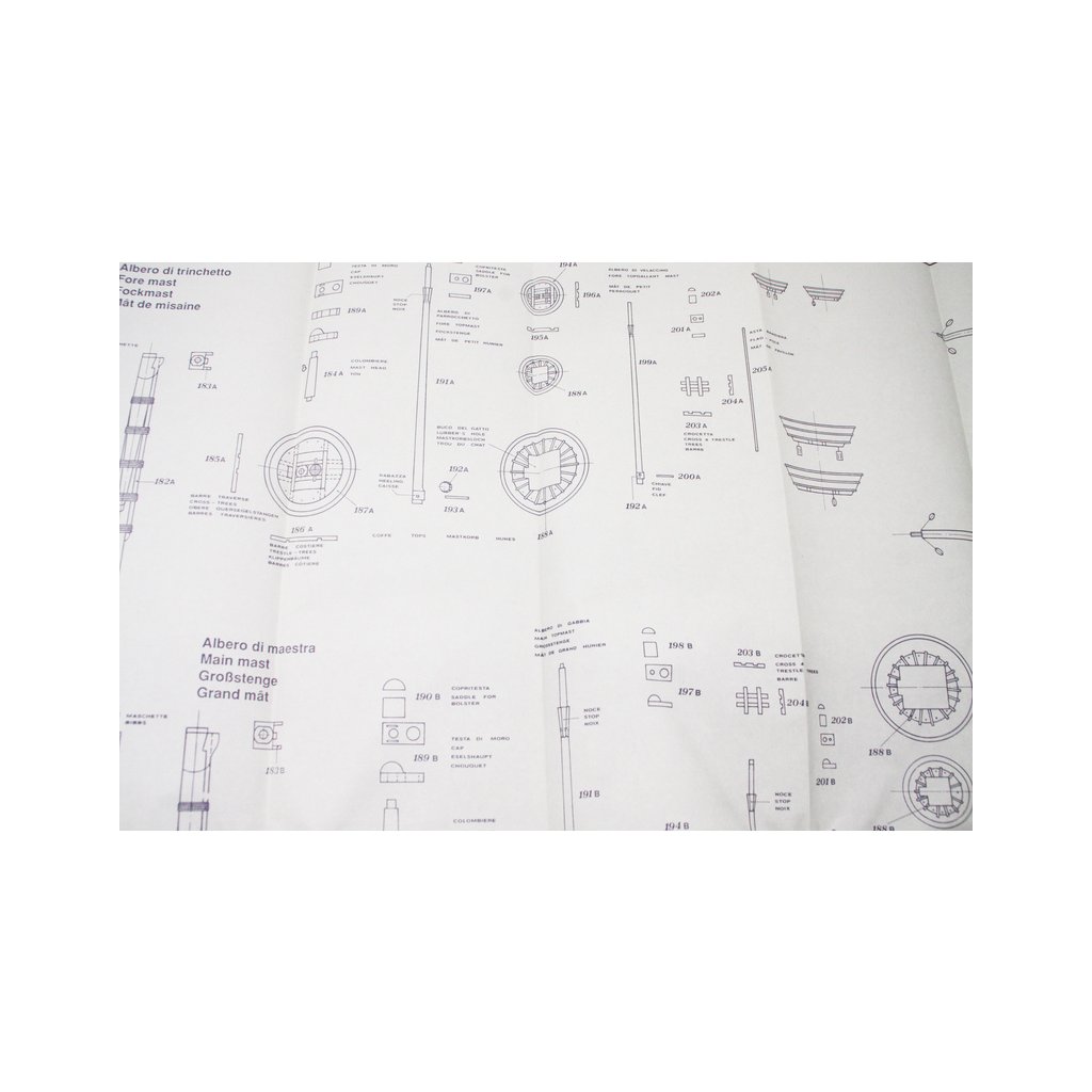 Set obsahuje kompletní sadu výkresové dokumentace modelu v měřítku 1:1 s obrázky jednotlivých detailů. Na výkrese jsou v měřítku nakresleny montážní sestavy, jejich kompletace a to včetně stěžňů a ráhen a způsob vázání lanoví. Vícejazyčný postup stavby rámcově upravuje logické sestavení jednotlivých komponentů.