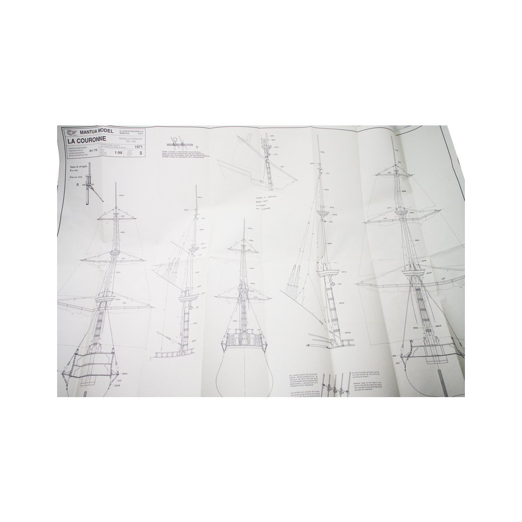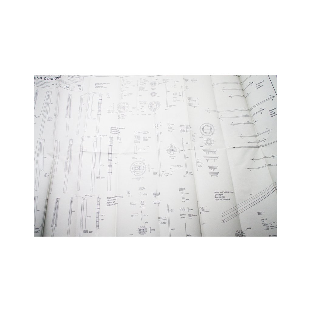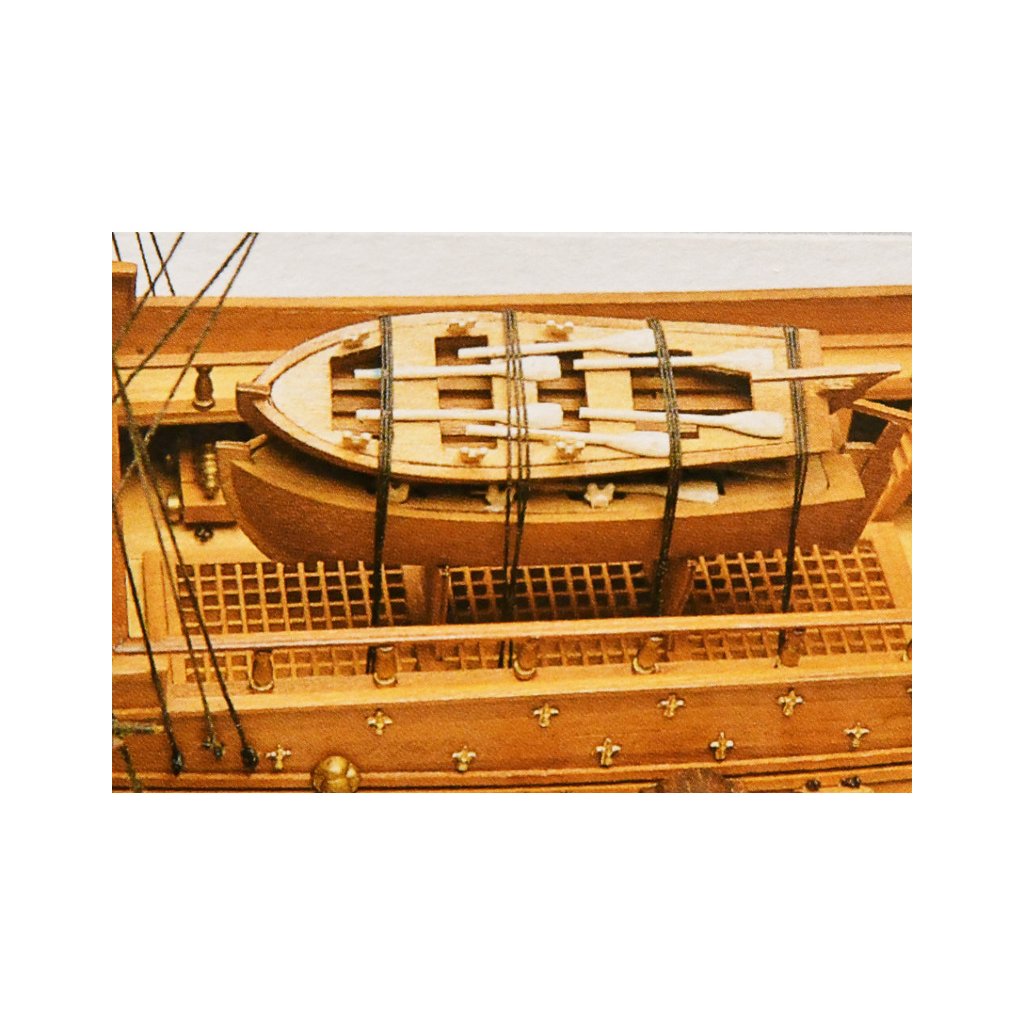 Plachty nejsou součástí balení, pokud chcete stavět loď která bude vybavena plachtami, je pro vás připravena Mantua Model Sada plachet: Couronne.