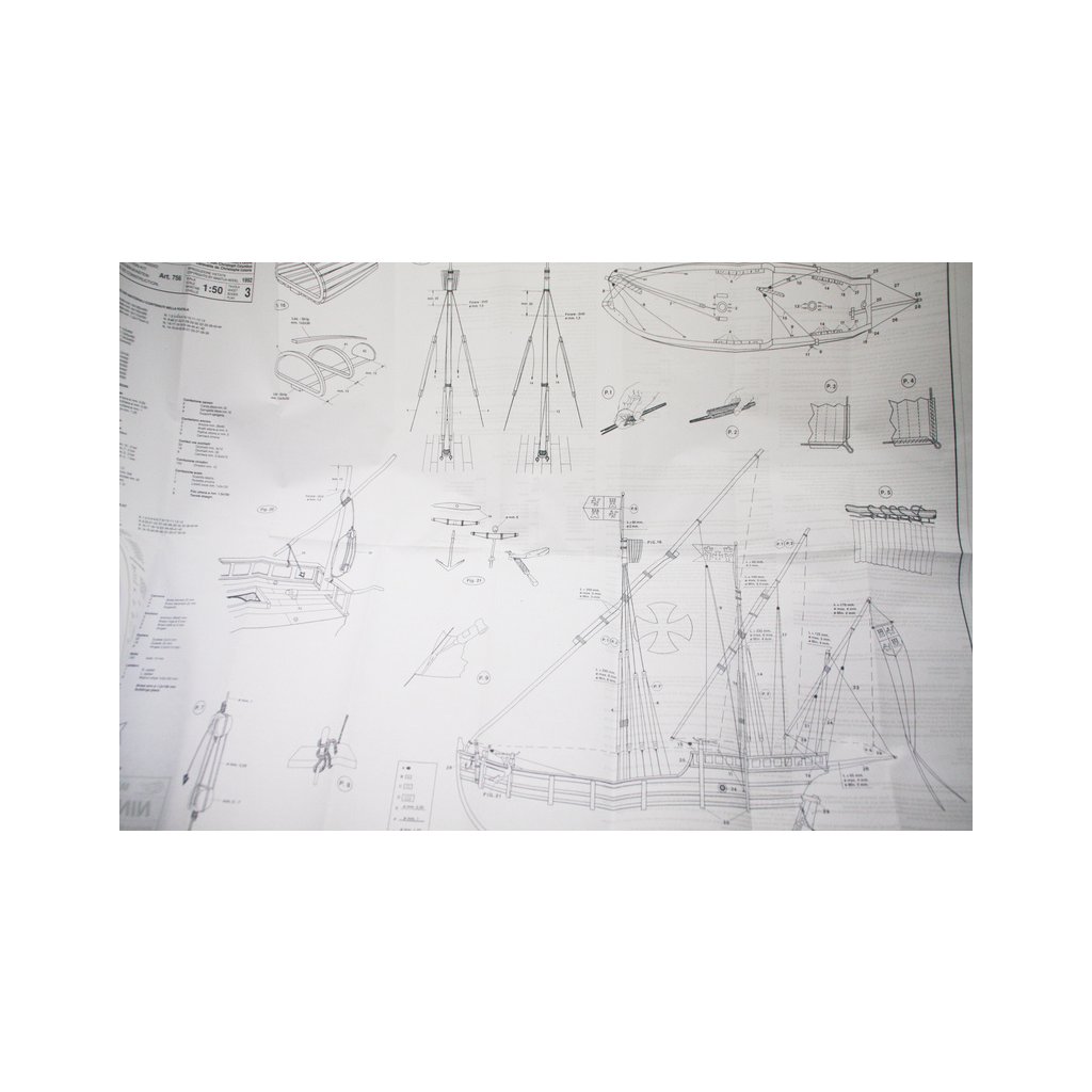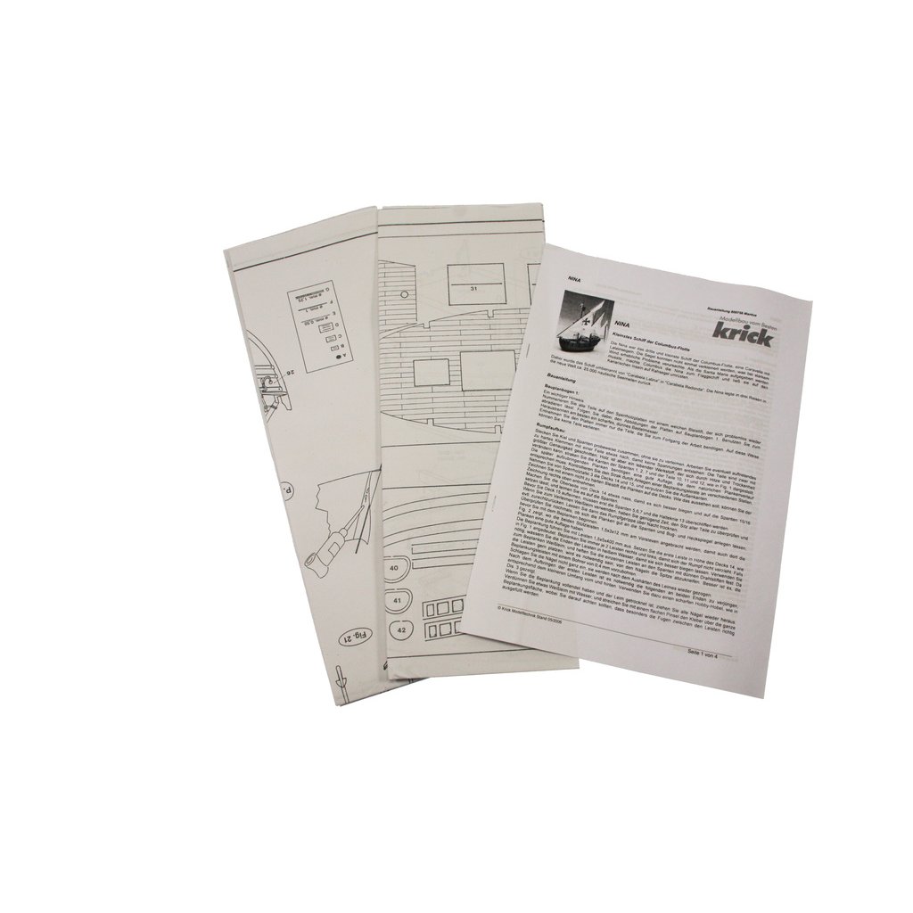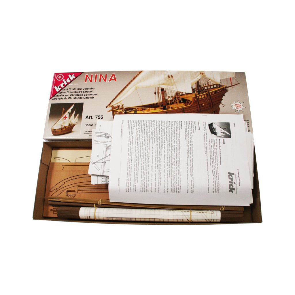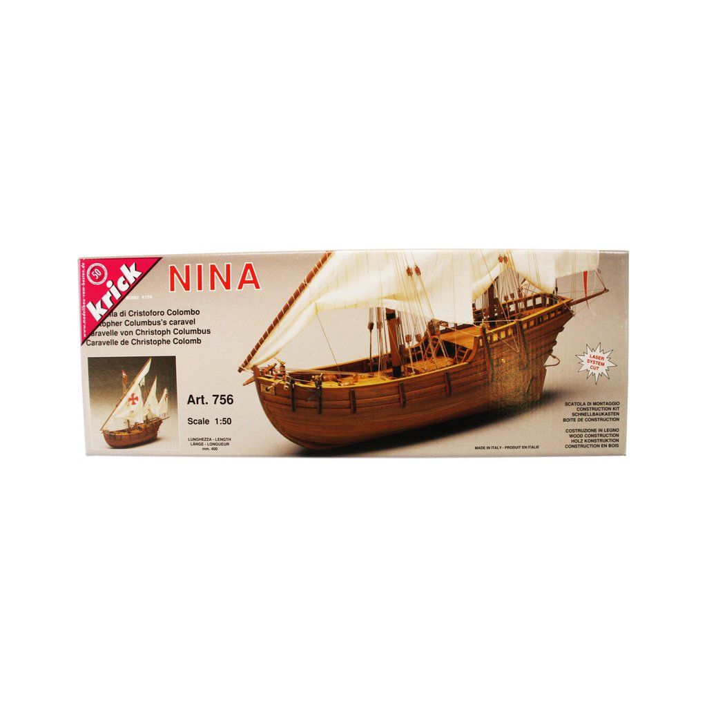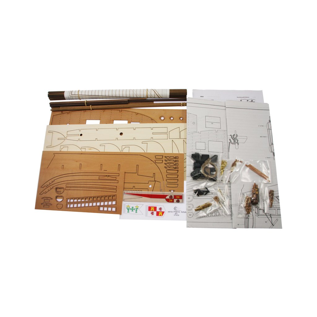 Stavebnice neplovoucího modelu známé plachetnice Mantua Model Nina v měřítku 1:50 a délce 410mm. Spolu s lodí Pinta a Santa Maria tvořila flotilu Kryštofa Kolumba, se kterou v roce 1492 objevil nový svět. Kit obsahuje dřevěné díly, kovové odlitky dekorací a podrobné stavební plány.