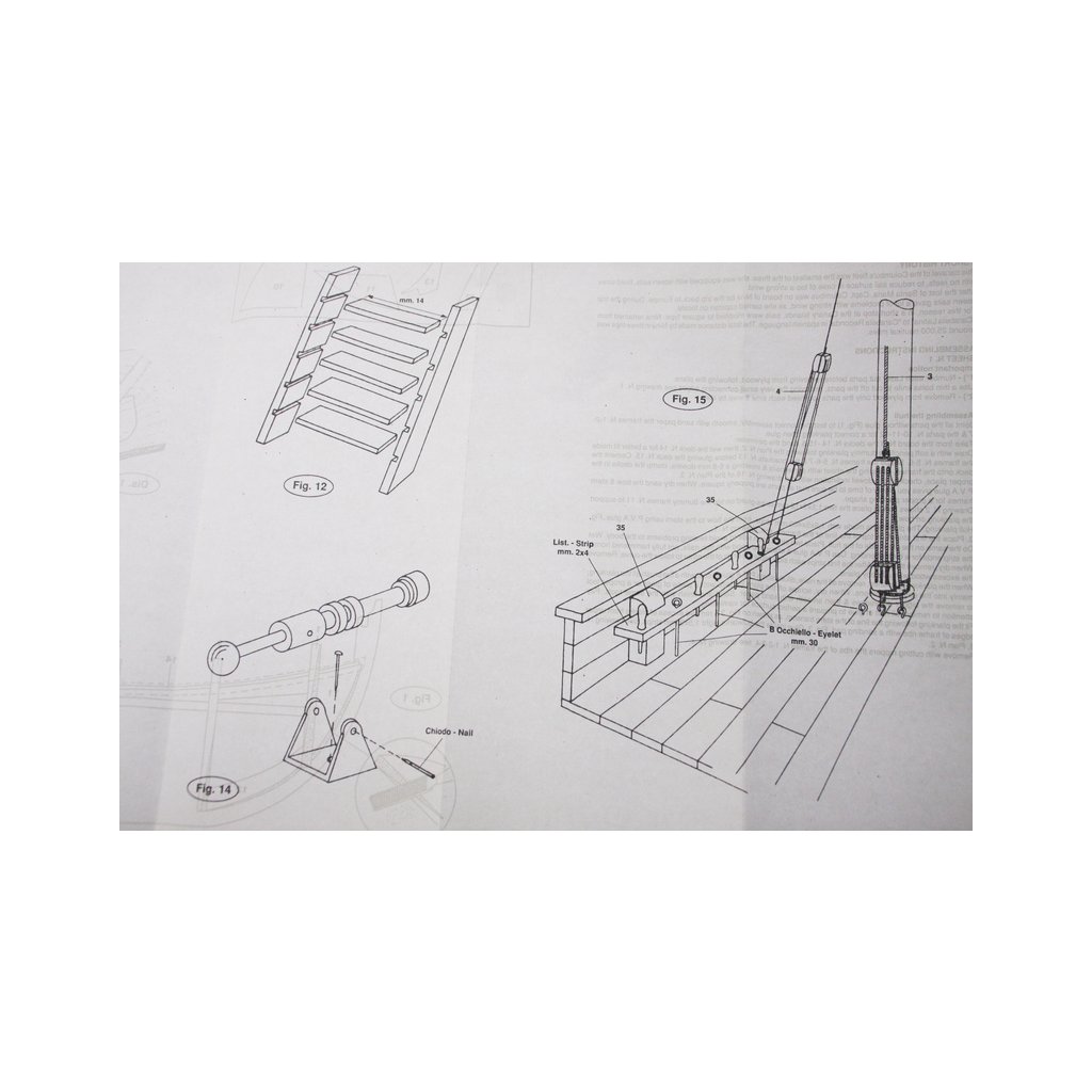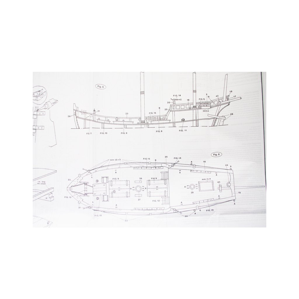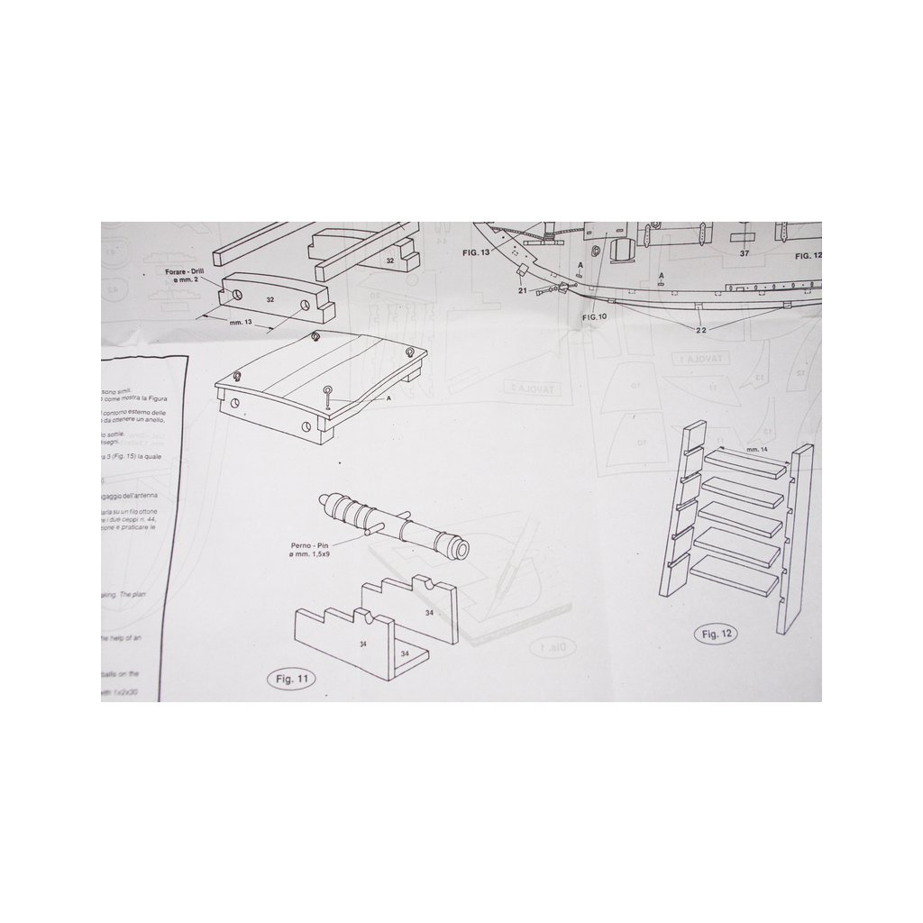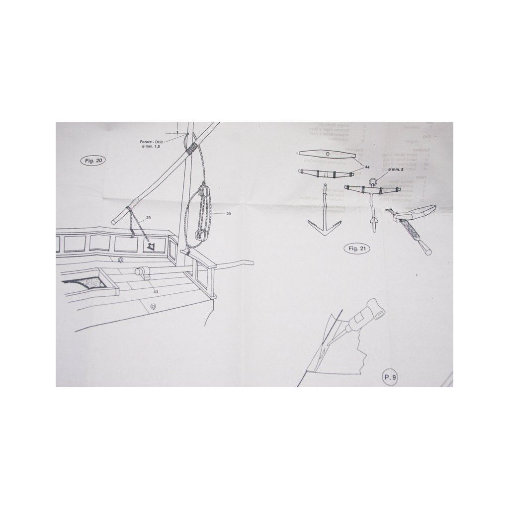 Balení obsahuje laserem řezané dřevěné díly, plaňky, paluby, stožáry, kovové a dřevěné kování, kovové odlitky. Stavební plány, manuál.