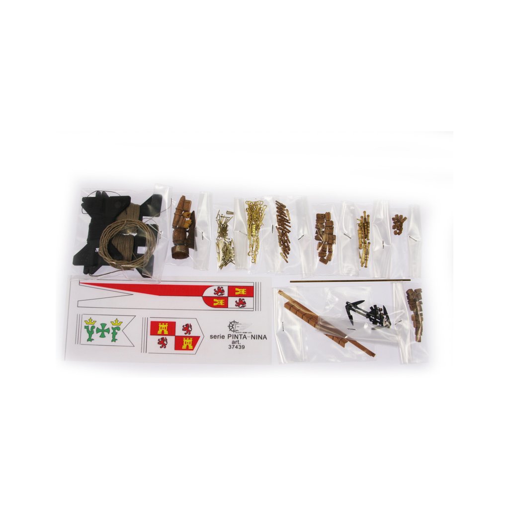 Kolumbus byl přesvědčen, že našel námořní cestu do Indie. Objevením dříve neznámého kontinentu začalo v 16. století nesmírně kruté dobývání Ameriky Španěly. Sada obsahuje všechny dřevěné díly, které jsou vyřezány s milimetrovou přesností pomocí laseru, barevné vlajky a plachty, vzácné dřevěné lišty, tyče a rozsáhlou sadu kování. S pomocí všech potřebných maketových doplňků si můžete vytvořit nádherný model.