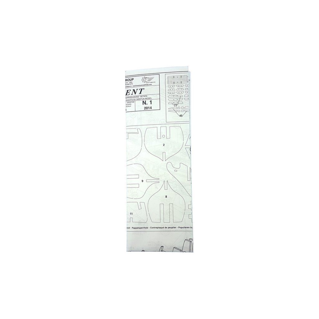 Po otevření víka krabice naleznete dřevěné díly modelu z překližky, lišty, drobné součásti v plastových sáčcích a manuál.