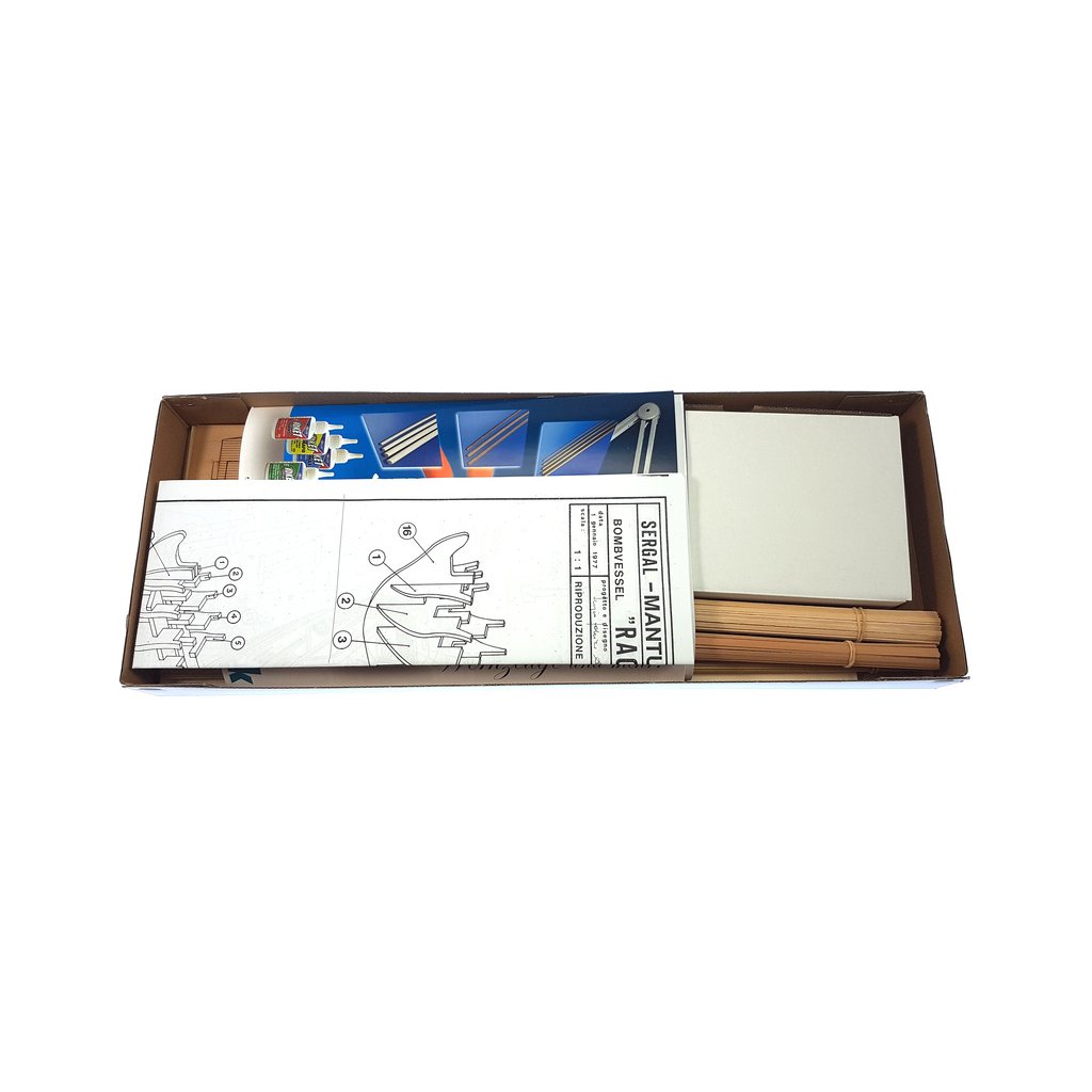 Balení obsahuje laserem řezané dřevěné díly, plaňky, stožáry, vlajku, lanoví, kovové a dřevěné kování a dekorace z mosazi. Stavební plány a vícejazyčný manuál.