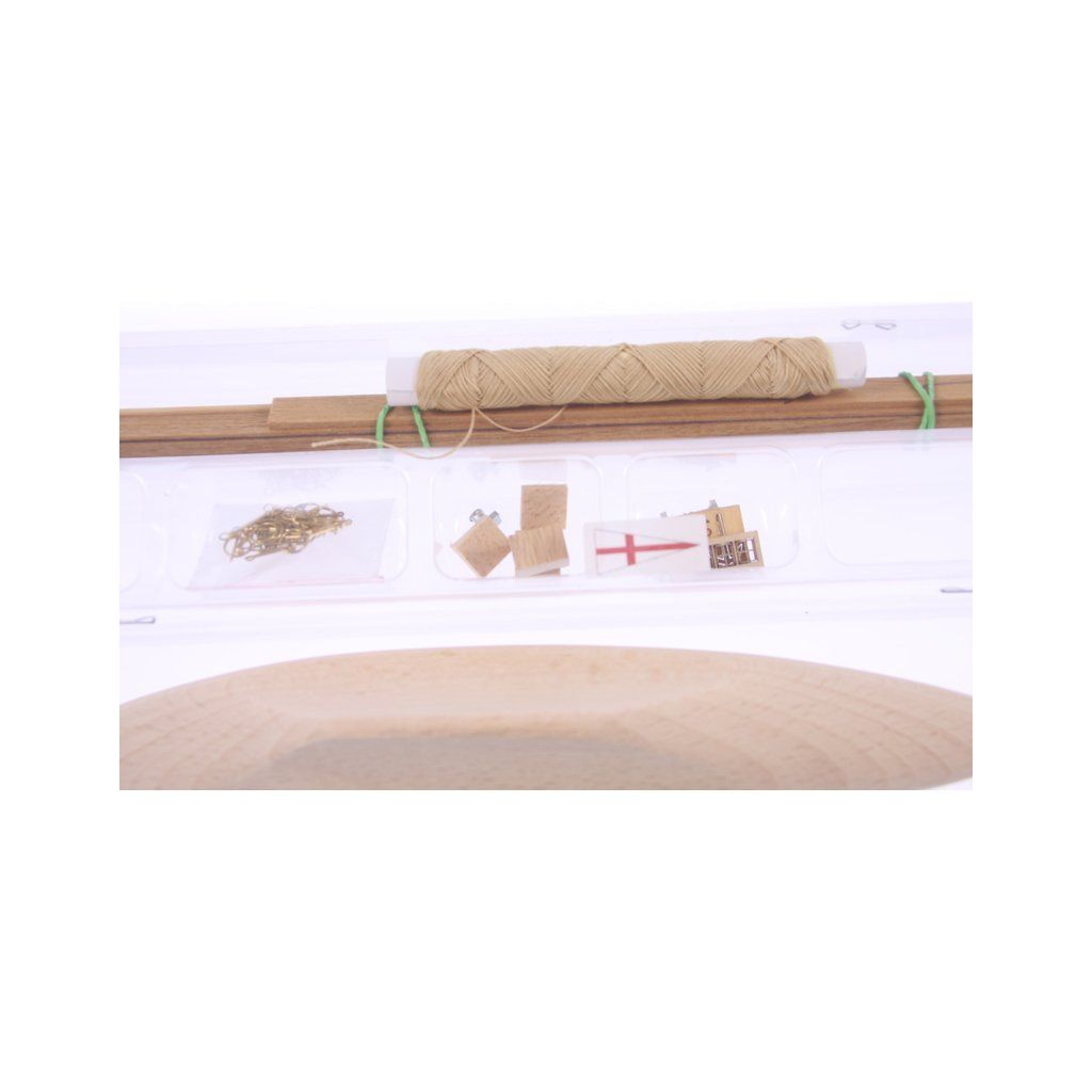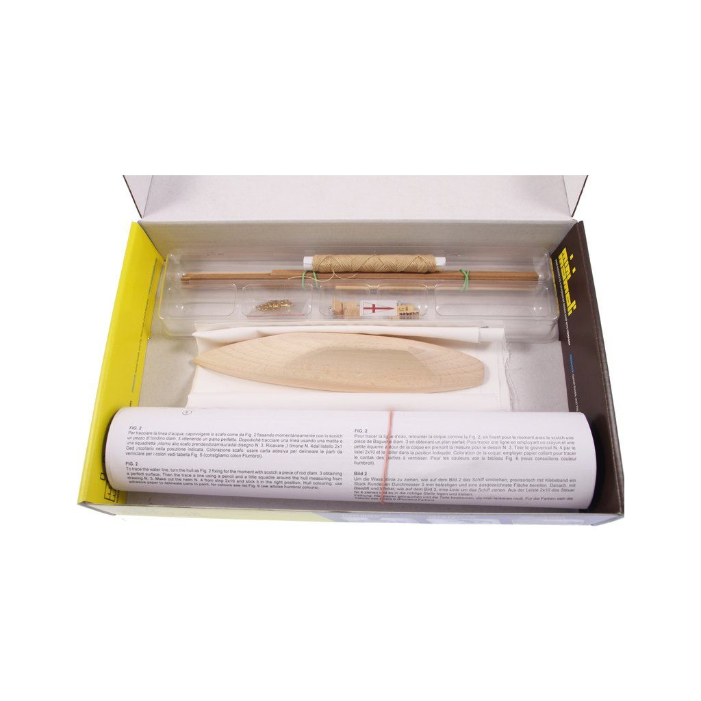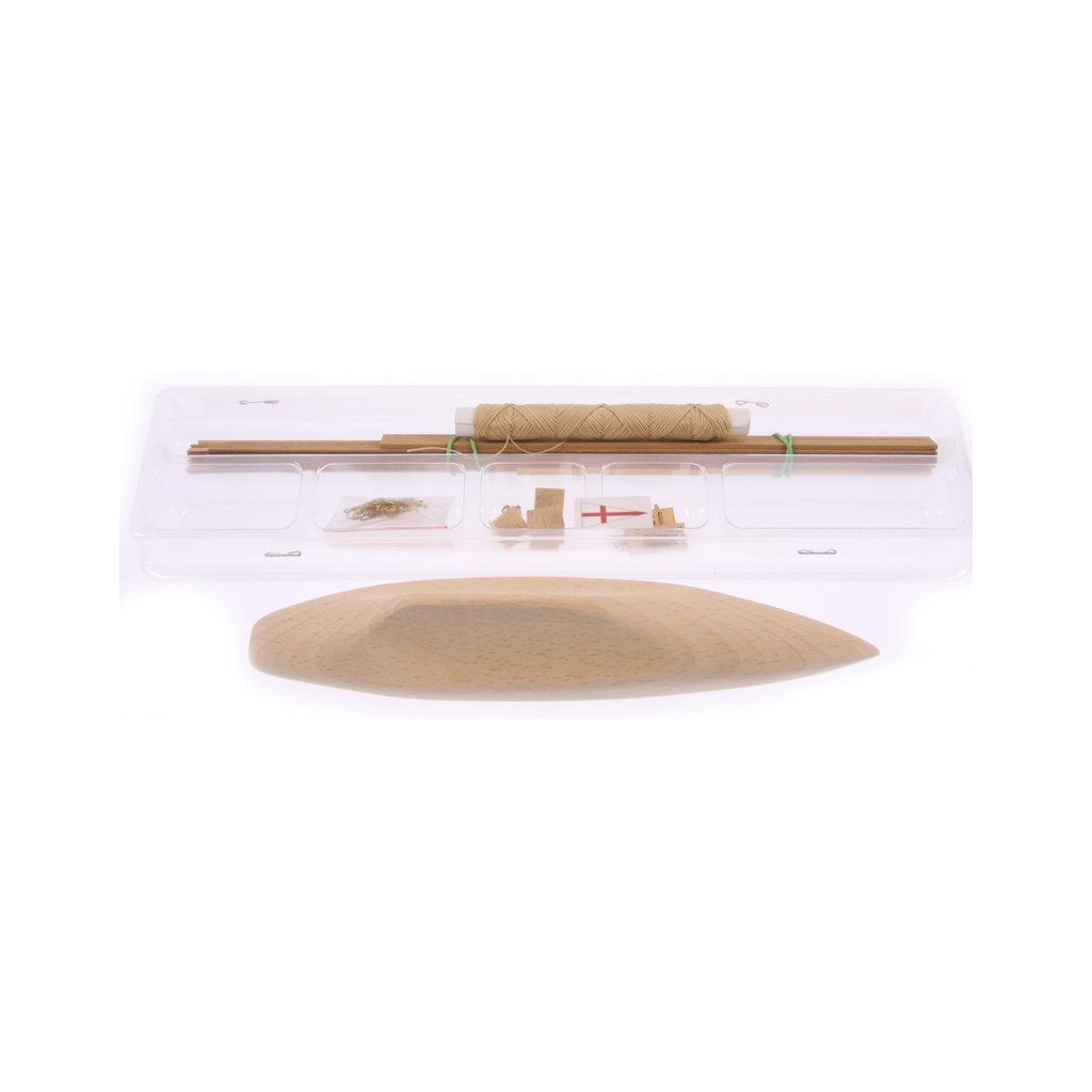 Balení obsahuje hotový polotovar trupu, překližkové díly, dřevěné lišty, blistr s drobnými díly, sadu výkresů a návod.