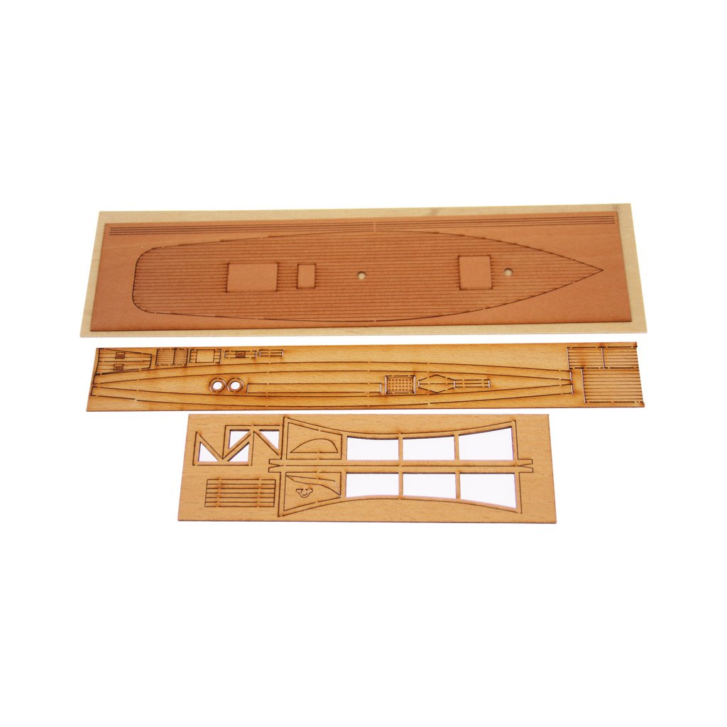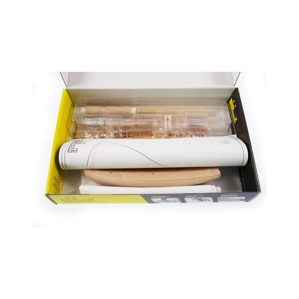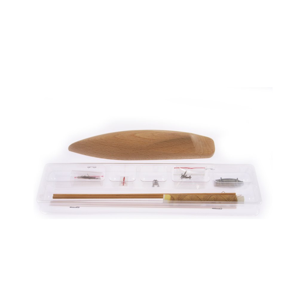Balení obsahuje hotový polotovar trupu, překližkové díly, dřevěné lišty, blistr s drobnými díly, sadu výkresů a návod.