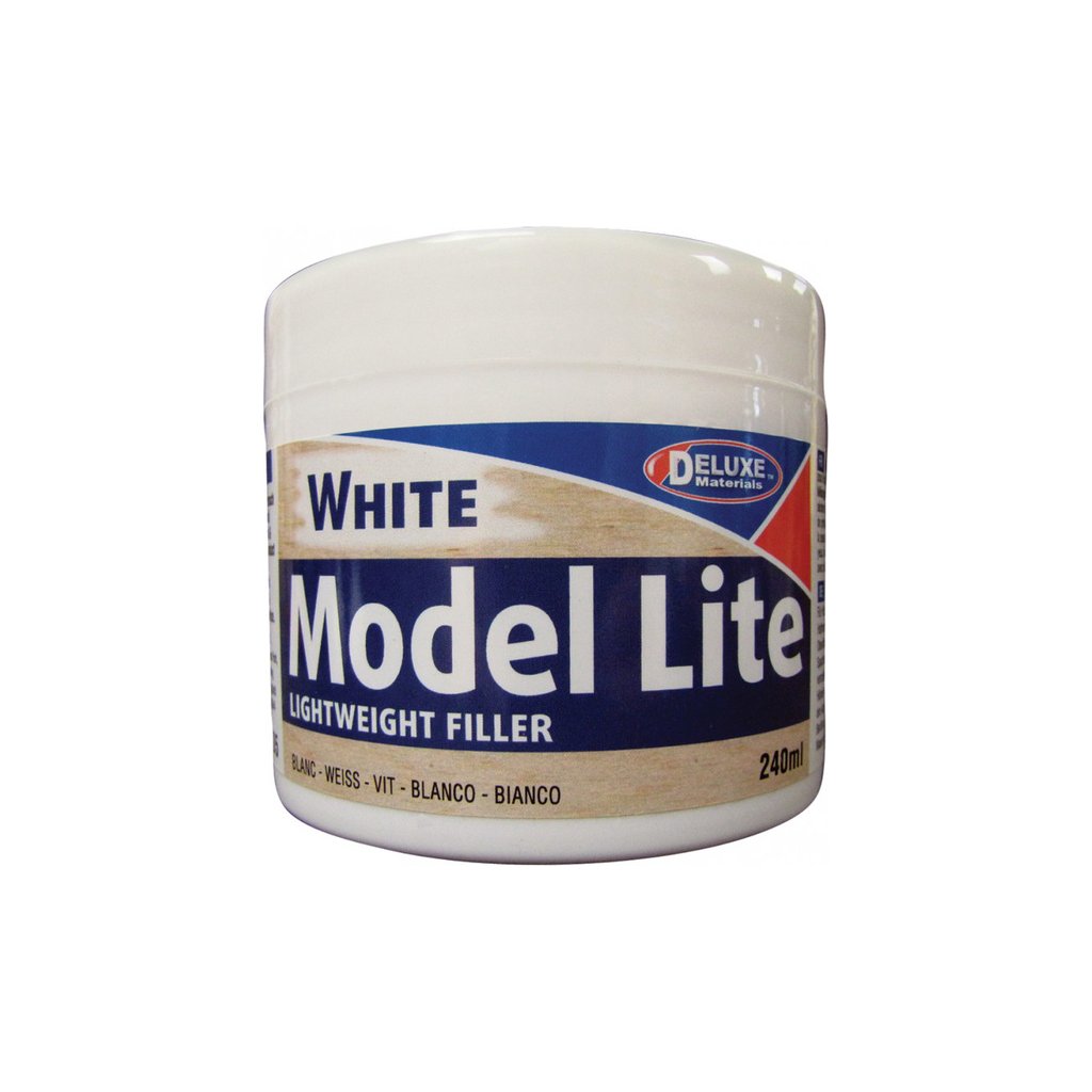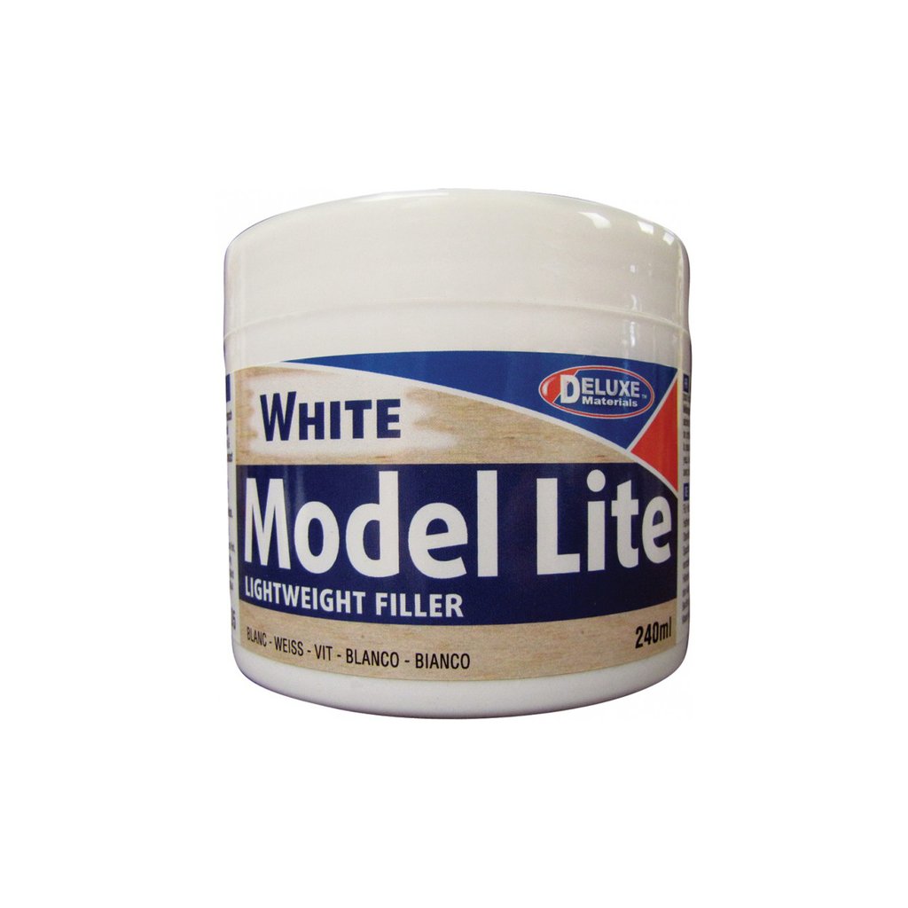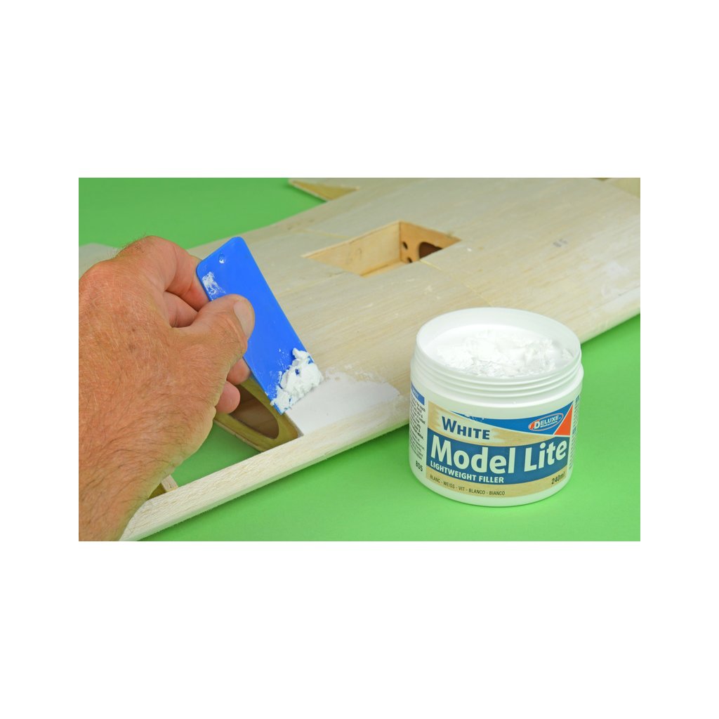 Model Lite White je velmi lehký jednosložkový tmel bílé barvy na dřevo, balsu, laminát a podobné materiály. Zachovává si své rozměry, nesmršťuje se. Tmel lze ředit vodou, tónovat vodou ředitelnými barvami v prášku. Pro zahuštění lze použít mikrobalony.