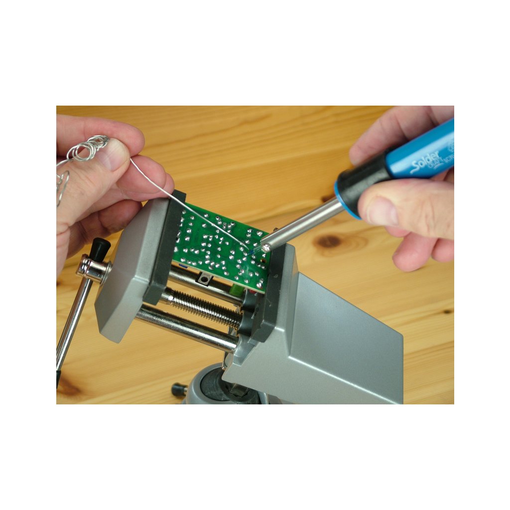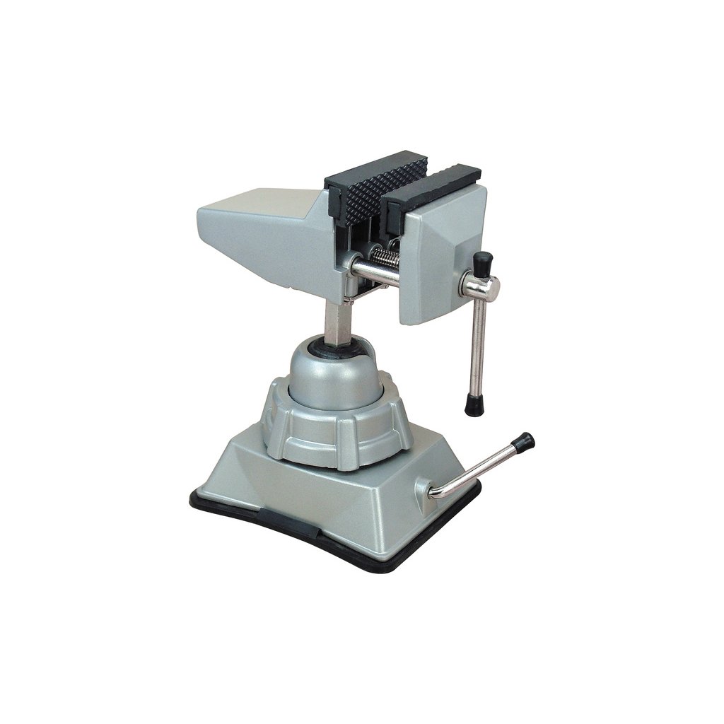 Modelcraft mikro svěrák je určen pro upínání drobných součástí lze upnout podtlakovou podložkou k běžnému stolu s hladkou deskou. Svěrák lze polohovat, naplápět (0°-90°) a otáčet o 360°. Hliníková konstrukce, drážkované čelisti, ocelové čepy. Šířka čelistí 65mm, výška 195mm, hmotnost 1,4kg.