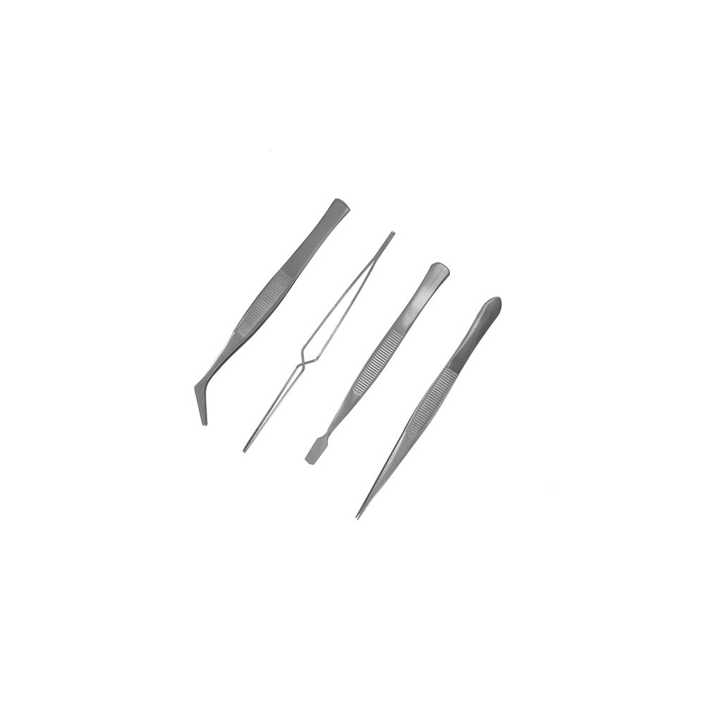 Modelcraft nerezové pinzety (sada 4ks) pro přesné a snadné chystání, držení a umístění malých dílů a součástí. Sada obsahuje pinzetu úzkou 120mm, s plochou špičkou 110mm, reverzní 120mm, a zahnutou 120mm.