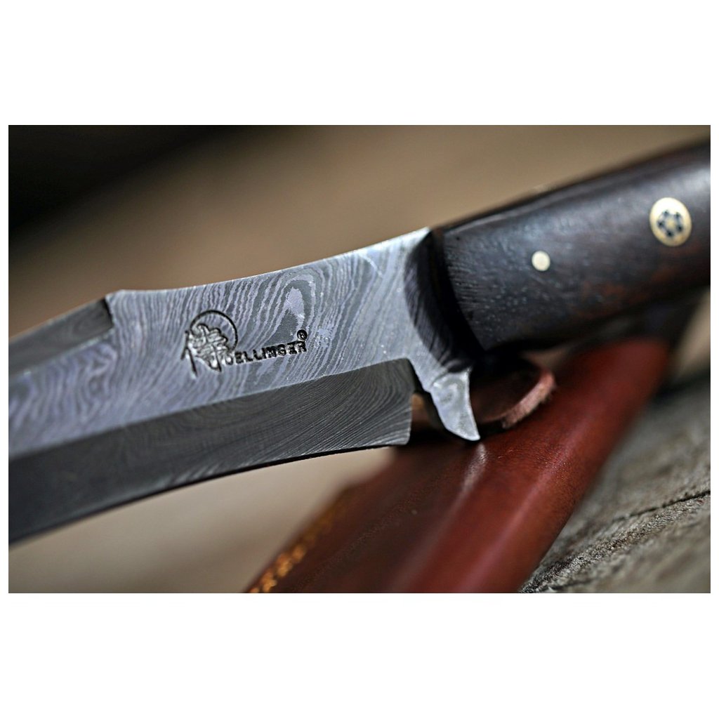Myslivecký nůž Dellinger Damask Iron Wood s koženým pouzdrem