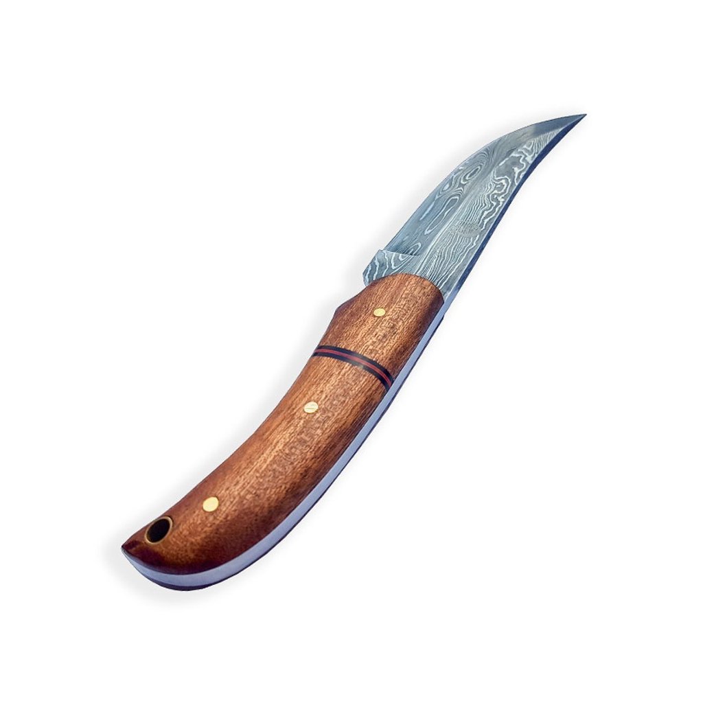 Praktický nůž Dellinger Damask Skinner Mahagony je velmi užitečný outdoorový nástroj s pevnou čepelí, ideální pro myslivost i náročný bushcraft. Čepel nože je vyrobena z damaškové uhlíkové oceli, kdy vyšší obsah uhlíku přispívá k její větší tvrdosti a odolnosti materiálu; čepel se navíc velmi snáze brousí do extrémního ostří. Nůž není nerezový. Díky tomu je potřeba o čepel také více pečovat – pravidelná údržba, včetně vytření do sucha po použití a následném naolejování, minimalizuje riziko koroze. Postupem času ocel přijme krásnou patinu, čímž se stane ještě jedinečnějším. Rukojeť je vyrobena z krásného mahagonového dřeva, které patří mezi nejvzácnější tropické dřeviny. Je velmi tvrdé a charakteristické svým červenohnědým zbarvením. Nůž je dodáván s koženým pouzdrem.