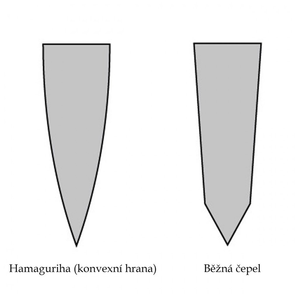 Ostrost: Hamaguriha (konvexní hrana) Vynikající japonská damašková ocel VG-10 je broušena do tvaru "hamaguriba", stejně tak jako japonské meče. Tímto je zaručena dokonalá ostrost a trvanlivost ostří.