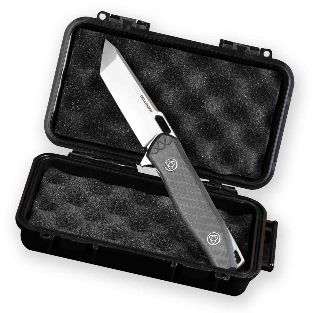 Nůž Dellinger Attack je symbolem odolnosti a precizního inženýrství. Detaily, jednoduchost a přímé linie jsou přednostmi zavíracího nože tanto, který je moderní interpretací odolného nástroje pro profesionální využití. 3,5 mm silná čepel s robustní konstrukcí zajišťuje noži výjimečné vlastnosti a tvrdost 60 HRC. Nůž výborně padne do ruky a jeho vyvážená váha napomáhá při přesné manipulaci. Ocel CPM S35VN je špičková prášková ocel, mimořádně houževnatá a odolná proti celkovému opotřebení. Jak primární hlavní ostří, tak sekundární ostří na hrotu tanto čepele, jsou ručně dobrušované. Průsečík těchto dvou rovin (známý jako Yokote) vytváří velmi účinný sekundární hrot pro precizní práci. Rukojeť z karbonových vláken se vyznačuje tenkým profilem a je navržena pro maximální stabilitu v dlani. Nůž je dodávaný v bezpečném plastovém transportním boxu.