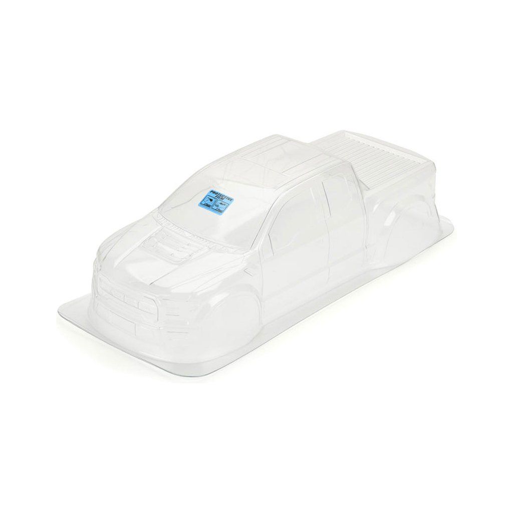 Pro-Line karosérie čirá 2017 Ford F-150 Raptor, pro RC modely aut Monster Truck v měřítku 1:8, rozvor 333mm, délka 496mm, šířka 191mm. Vyrobeno z odolného lexanu.