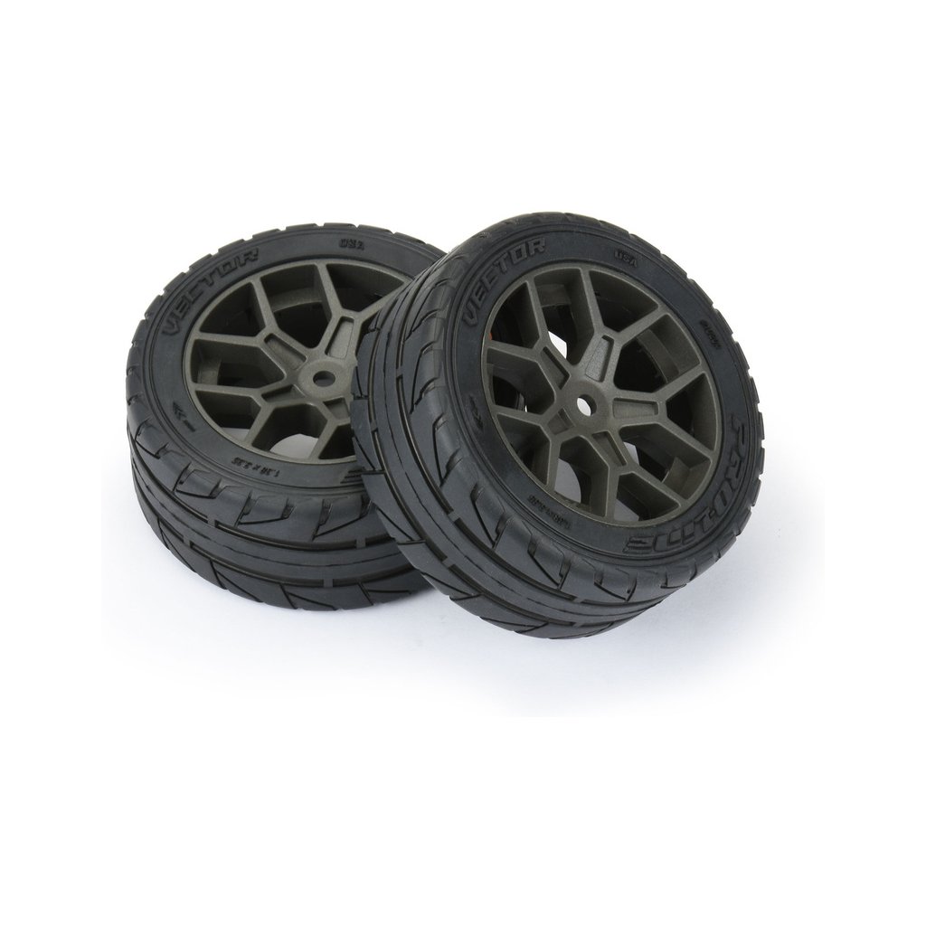 Pro-Line kolo 2.4" Vector S3 35/85 Belted, disk šedý H14 (2 ks), pro RC modely aut 1:8 Street Bash. Rozměry ⌀87x36mm. Směs S3 (Soft). Vložka Open Cell.