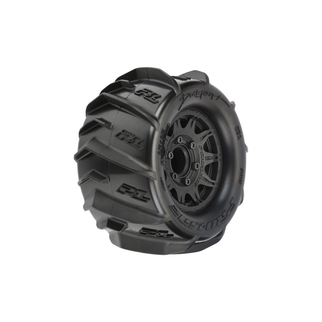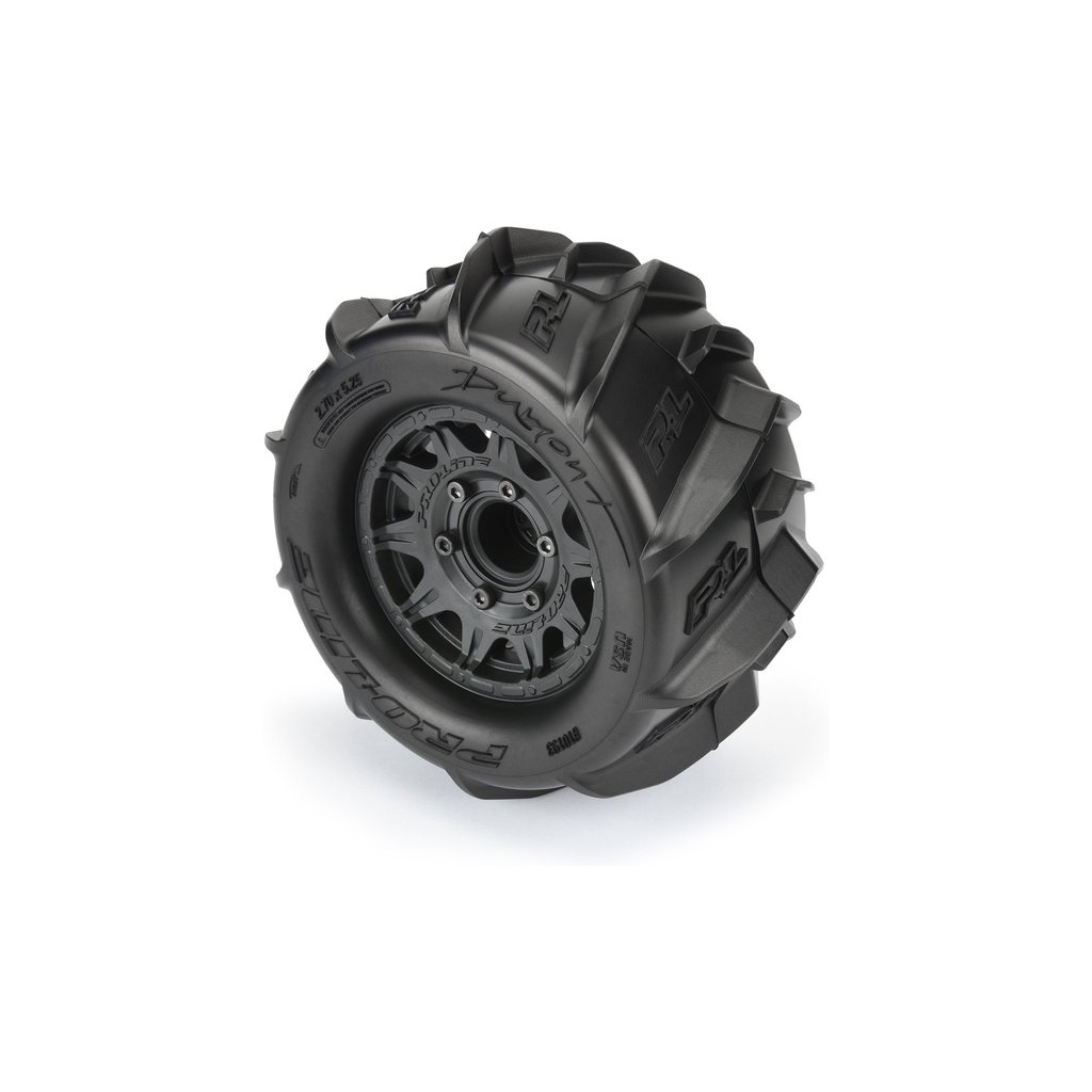 Kompletní kola Pro-Line pro RC modely aut 1:10. Rozměr ⌀135x68 mm. Disk Raid má černou barvu. Pádlové pneumatiky Dumont 2.8" MT, tvrdost směsi Z3 (střední). Unašeč je šestihran 12 mm.