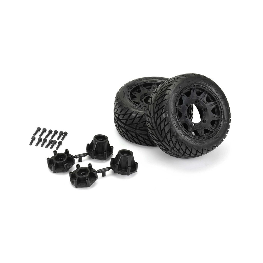 Kompletní kola Pro-Line pro RC modely aut 1:10. Rozměr ⌀112x67 mm. Disk Raid má černou barvu. Pneumatiky Street Fighter LP 2.8" MT, tvrdost směsi M2 (střední). Unašeč je šestihran 12 mm.