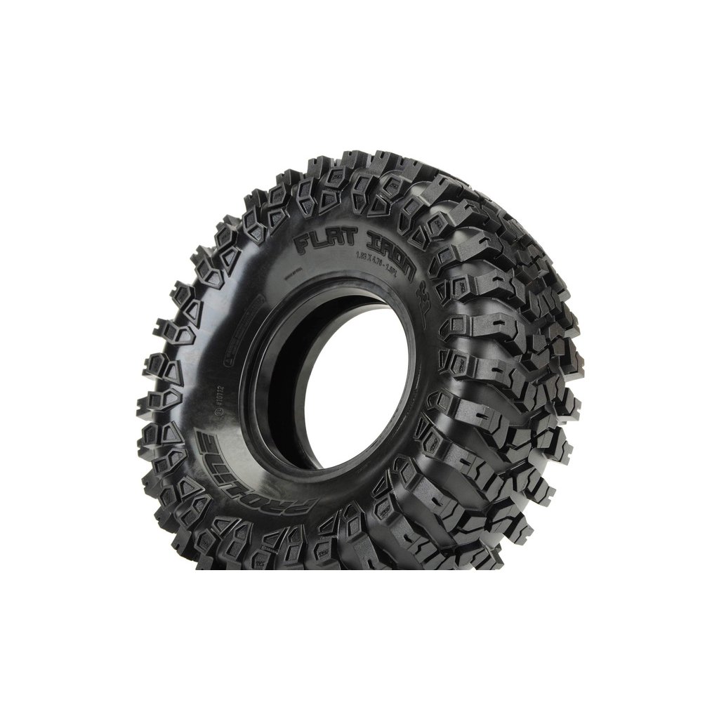 Pneumatiky Pro-line Flat Iron XL 1.9" Rock Crawling, pro RC modely aut 1:10. Rozměry ⌀121x46mm. Směs G8 měkká. Vložka Open Cell.